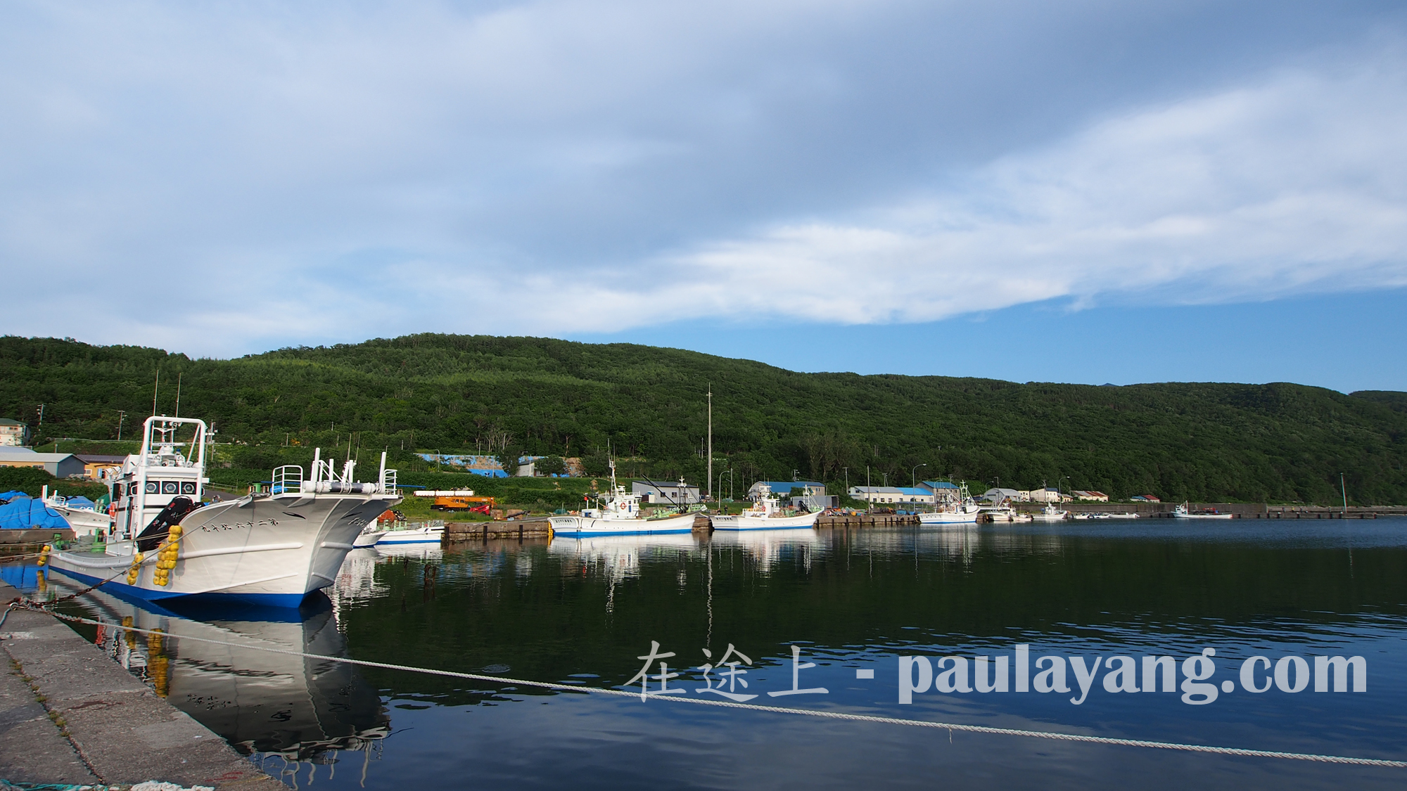 知布泊漁港」。我們根本不知道這個地方,是下車看見路牌才知道。(後來上網翻查,「知布泊漁港」位於斜里町,是個釣魚勝地。)