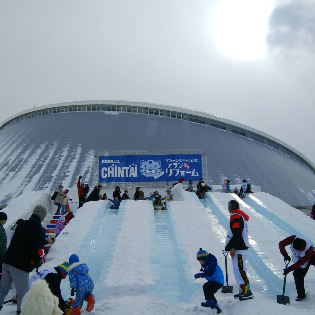 TSUDOME會場提供各種用雪做的溜滑梯和滑雪遊艇等遊樂設施,而且在館內設有大型休息區及飲食區,讓大人和小朋友都享受玩雪的樂趣。當中巨型滑雪道十分刺激,絕對必玩! 活動期間則可以在「栄町站」乘搭會場接駁巴士前往。*要注意會場沒有租借滑雪用品服務,大家要自行穿備前往。