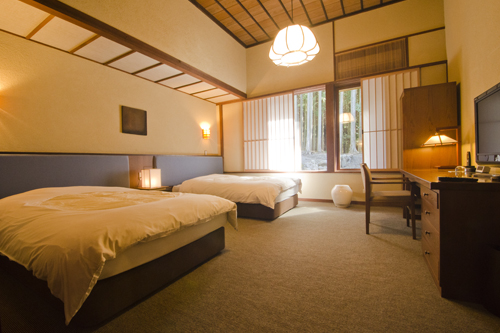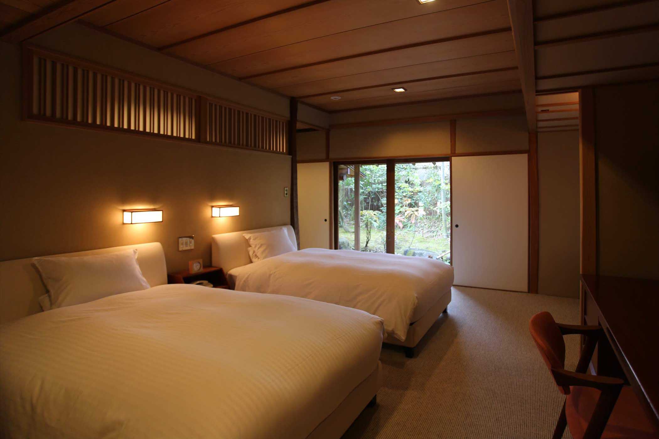 山莊無量塔的每一間客房都是獨棟設計,而且每一棟之間皆有樹林稍為隔開,私隱度極高。客房均以日本傳統風情及現代風格結合,空間大且舒適,處處都可感受到山莊無量塔對細節的追求。