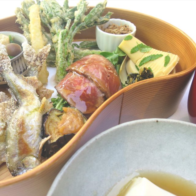 晚餐及早餐皆於房間內享用,而管家也會通過特別通道送上餐點。而晚餐是以當地四季食材製作而成的山村創意料理,風味絕佳。