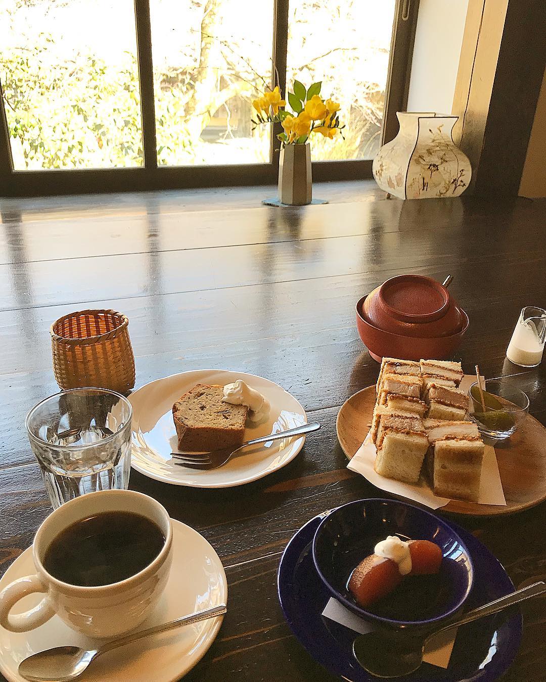 除此之外,龜之井別莊也有一個所有旅客都能造訪的咖啡廳「天井棧敷」,其坐落於大自然環繞下的靜謐空間,在老屋內品嚐高級又優質的咖啡,也是一個文青拍照打卡的好地方喔!