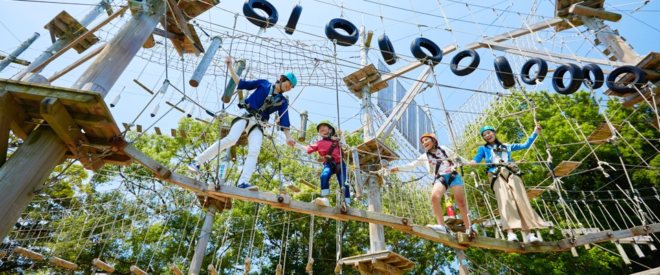 露天水上遊樂園是夏日限定的公園設施,內有多達40種的遊樂設施,當中包括長約300公尺、全西日本最大的漂流河,3條旋轉水滑梯,以及在小孩中人氣極高的恐龍噴水池,年紀比較小的幼童們,亦可以到水深較淺的幼兒水池嬉水,是夏天必到的景點之一!