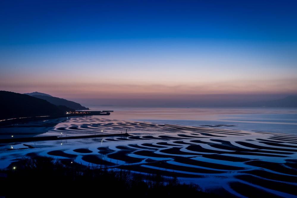 吃飽喝足後,休息一下,我們前往下一站有「日本海濱百選」美名的御輿來海岸。位於九州最大海灣「有名海」沿岸,而這裡最有名的就是漲潮與退潮的水位落差,孕育出周遭的海苔養殖業,在退潮時露出的溼地美景,更是讓人讚嘆不已,每年吸引許多攝影愛好者到此地拍攝特殊景觀與夕陽。非常適合獨旅旅人散步兼散心。