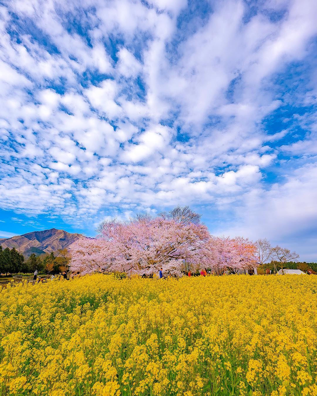 熊本阿蘇的一心行大樓是一株樹齡超過400年,樹高14米的巨大櫻花樹與周圍的黃菜花互相映襯,去熊本遊玩的朋友務必一定要去!