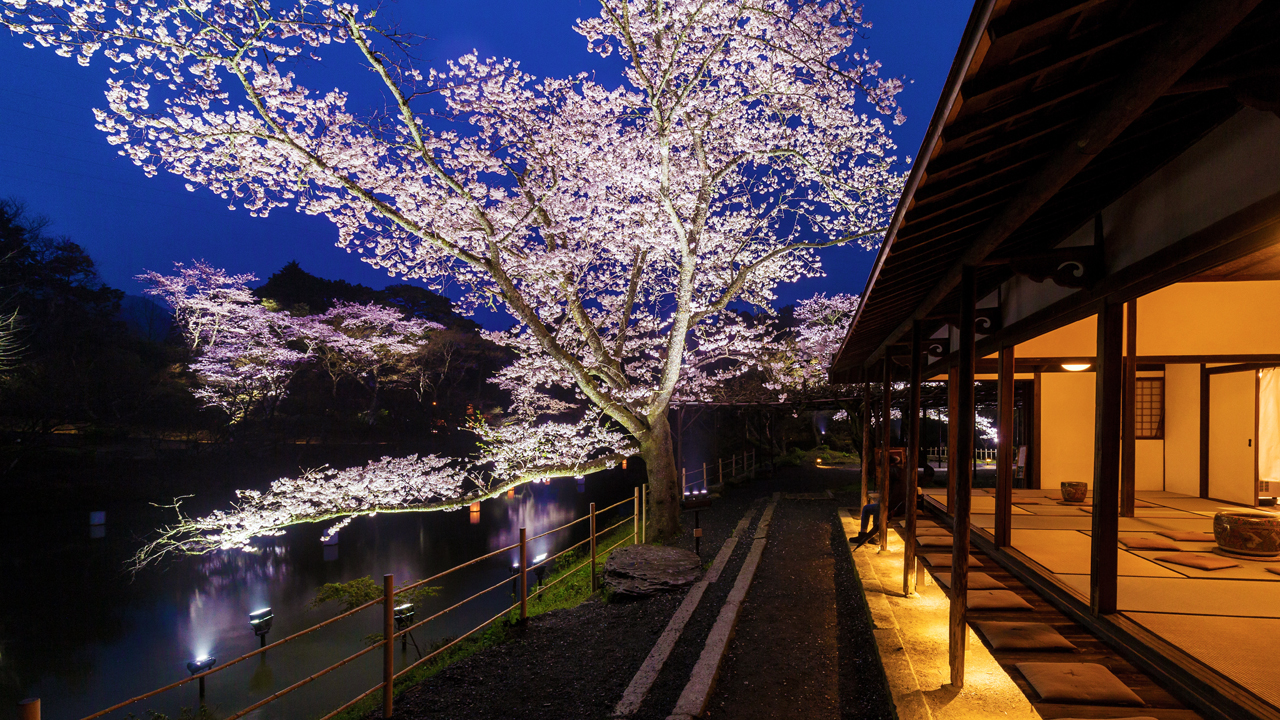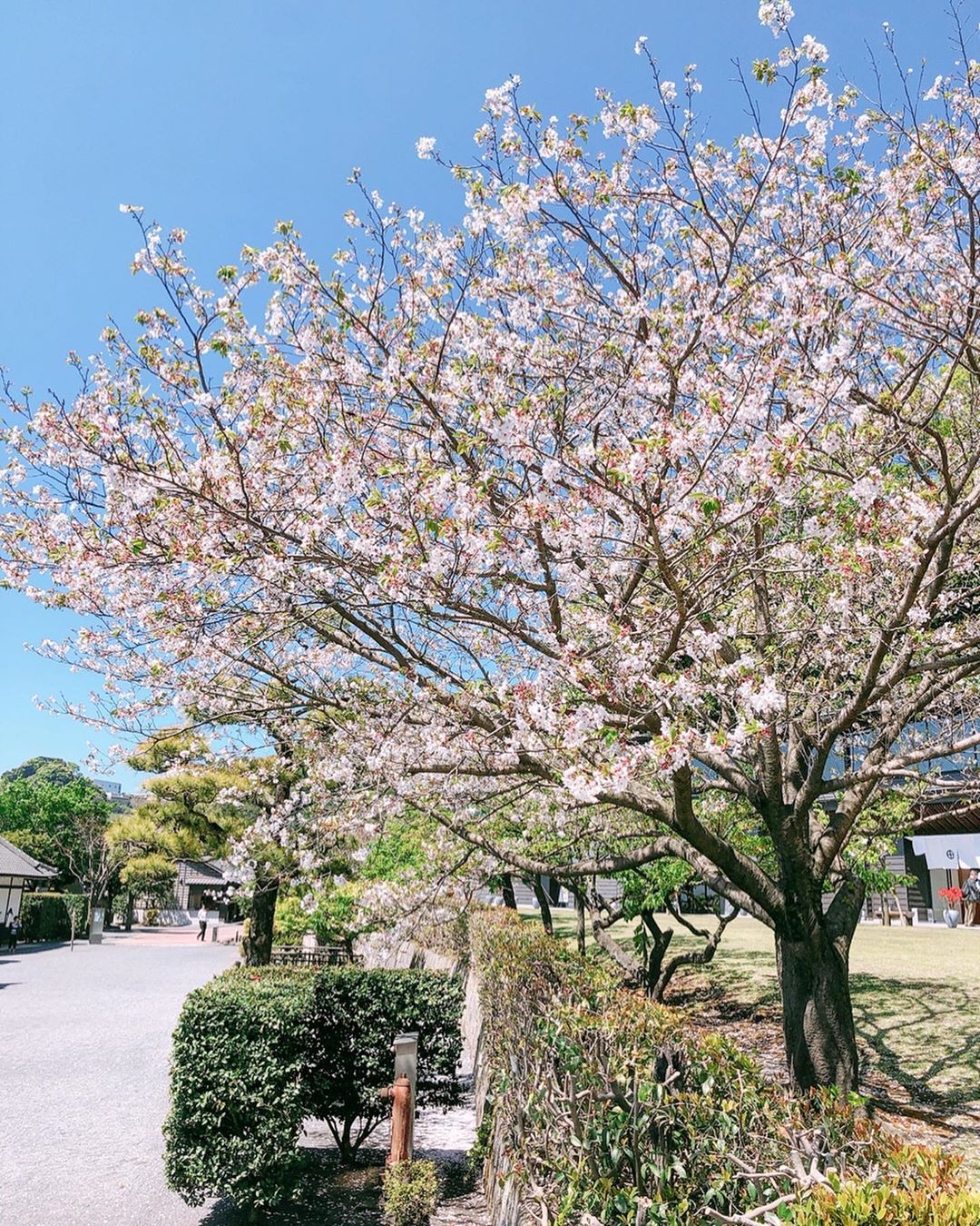 鹿兒島的仙巖園是有名的薩摩藩藩主島津的庭園,巧妙地將櫻島納入庭園的假山,是鹿兒島必去的借景庭園,在櫻花季時盛開的櫻花尤其美麗。