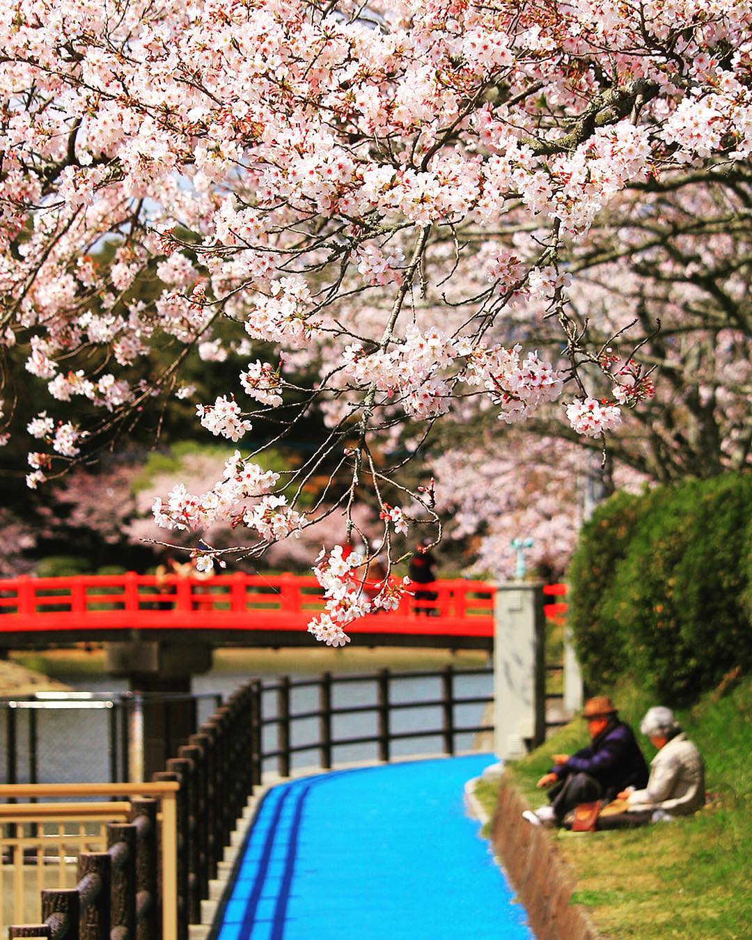 母智丘公園是「日本賞櫻名所100選」之一 ,擁有全長約2公里的櫻花步道,是南九州有名的賞櫻景點。