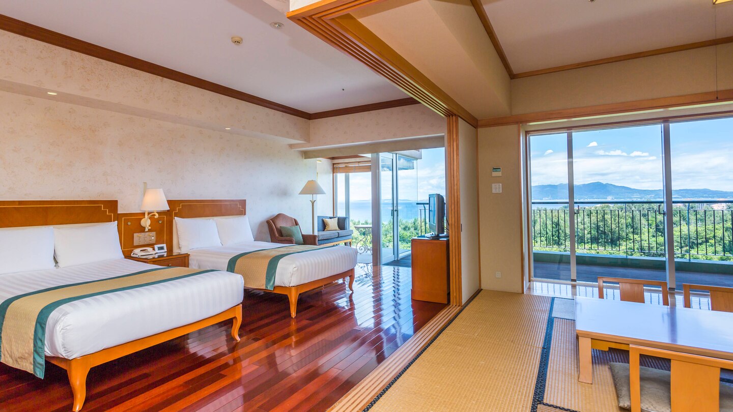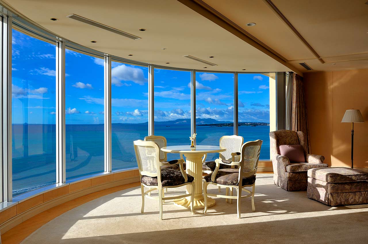 酒店房間分為洋式及日式2種房型,房間面積頗大,皆有陽台可欣賞沖繩美景,更可遠眺殘波岬燈塔。而酒店內設施齊備,游泳池、SPA、三溫暖、高爾夫球一應俱全,酒店每天晚上還有沖繩傳統舞蹈表演可以欣賞。