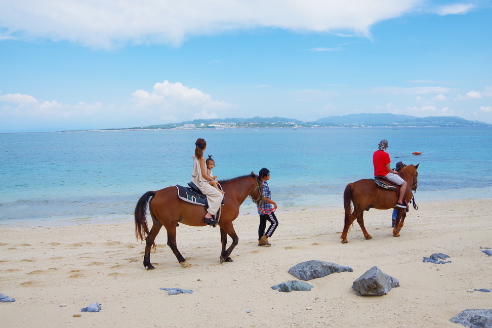 大家來到伊江島還可以化身公主與王子,在海邊騎馬散步!伊江島海濱馬園提供共5款騎馬體驗,分別是水中騎馬、沙灘及森林騎馬、沙灘及郊外騎馬、騎馬初學者課堂以及伊江島騎馬半天遊,其中初學者課堂並不是必修的,而且部份體驗亦容許家長與小孩騎同一匹馬,是個不錯的親子活動!