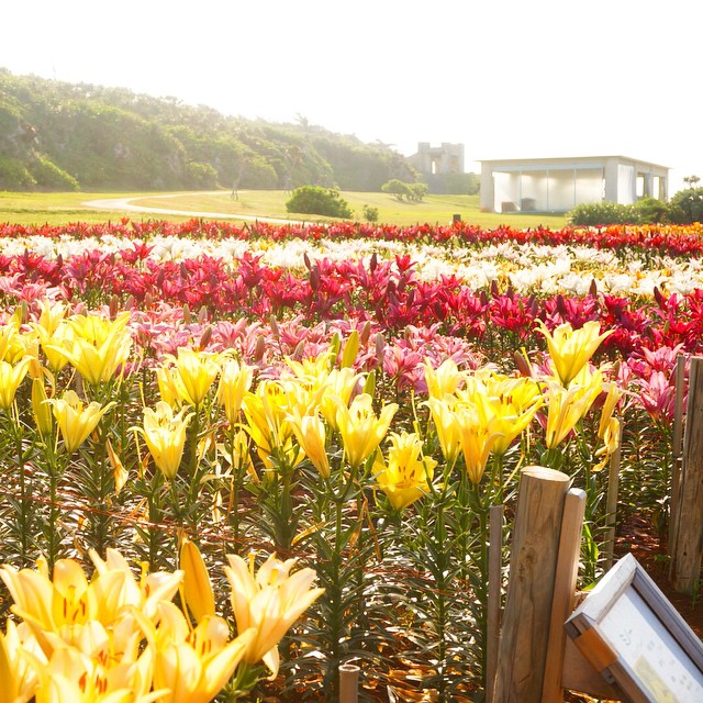 伊江島比較出名的盛事,就是每年4月中旬到5月上旬舉辦的百合祭(百合祭り),屆時將有100萬朵不同品種的百合花盛放,各種顏色的百合都有,而祭典的主角就白色的「麝香百合」,站在一大片白色花海之中打卡超美!更值得一提的是,在祭典舉辦期間,還會有免費接駁車由伊江港直接載遊客至會場,很方便哦!
