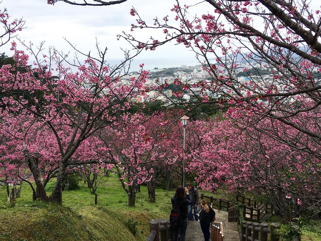 每年一月下旬至二月中旬,名護城、名護中央公園一帶均開滿顏色艷麗的琉球緋寒櫻,一月最後一個週末更以名護中央公園為中心,在櫻花公園的祭典廣場、名護十字路口、名護漁港舉辦為期兩日的「名護櫻花祭」,奪目的鮮粉色包圍長達2KM的散步道,遊客可以一邊散步一邊欣賞櫻花。屆時還會有小食/遊戲/商品攤販、巡遊活動、歌舞表演等,可以一嚐日本祭典的樂趣。