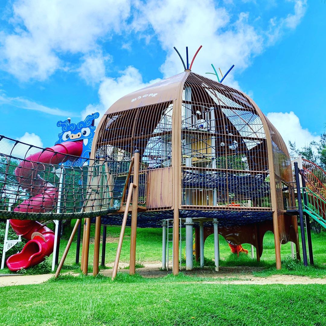 佔地達37萬平方米的浦添大公園,分為「歷史學習區」、「休憩廣場區」及「友誼廣場區(ふれあい広場ゾーン)」共3個區域,而人氣最高的就是「友誼廣場區」,這裏不只有一般公園所見的攀爬架、繩網、鞦韆等設施,還有4層樓高、長達90米的滾輪滑梯,溜一遍大概需要超過40秒,非常好玩!不過可惜,目前滑梯規定6到12歲的孩子才可乘坐,大人們就只能羨慕孩子們了!