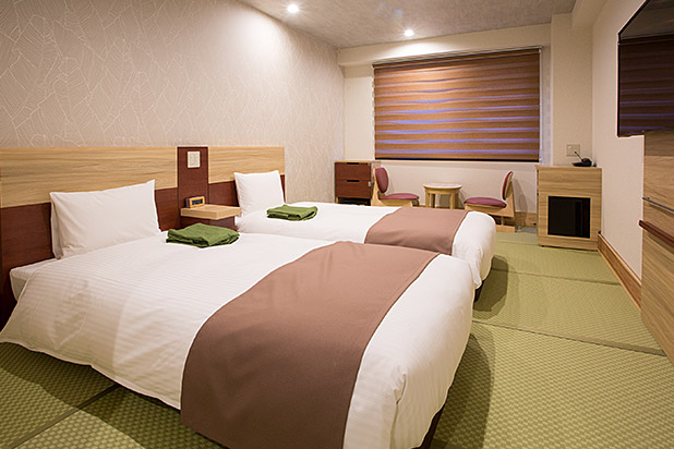 酒店總共有6款客房,客房簡單舒適,設計上善用了每一吋空間。眾多房間中還有1間專為殘疾人士而設的客房,非常貼心。而酒店內有公共人工溫泉 — 四季乃湯,為你消除一整天的疲勞。