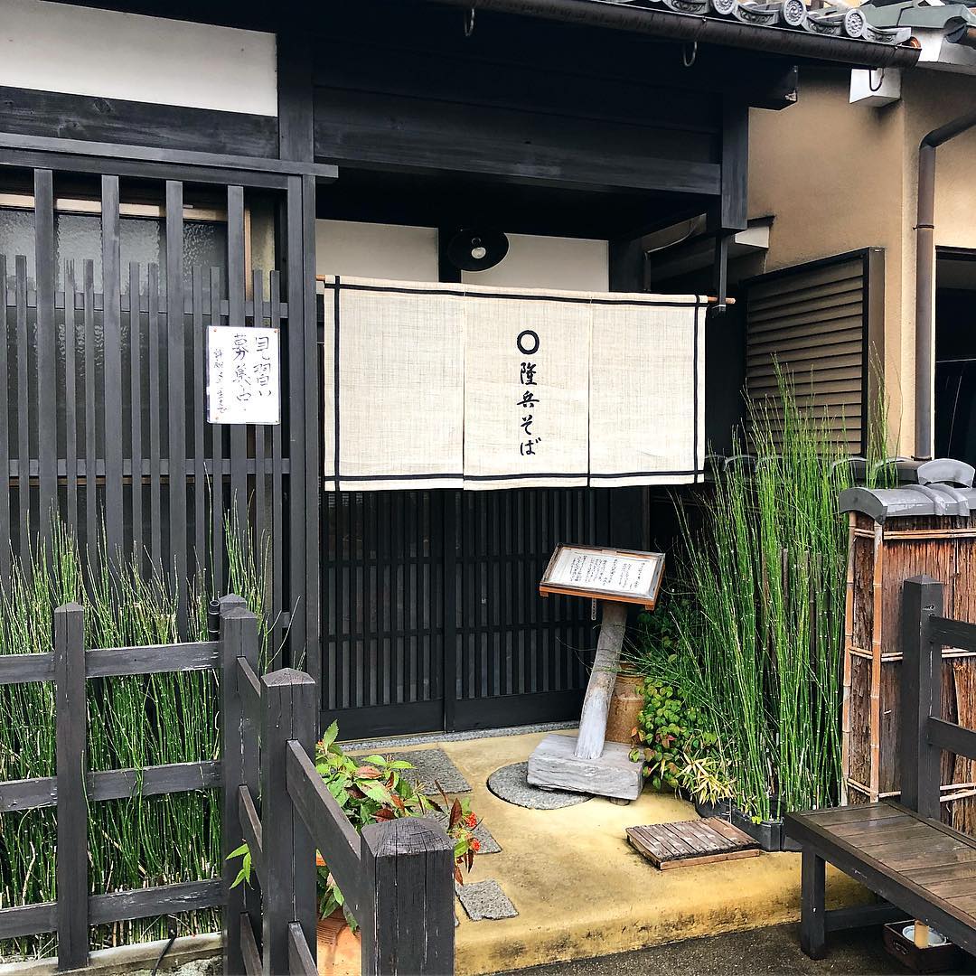 位於桂離宮不遠處的「隆兵そば」,是間在食べログ上獲3.77分的蕎麥麵名店,其在用料上非常講究,一直以來堅持使用有機栽培或無農藥添加的天然食材,主要都是產自京都近郊,而所有烹調過程用到的水,都是來自愛宕山中被稱作伏流水的井水,其水質極佳,為店內所有的菜餚都提升了一個層次!