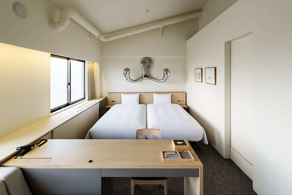 位於京都九條及十條之間的京都安迪魯酒店是隸屬於UDS Group,UDS Group旗下最有名的當屬與無印良品合作的北京Muji Hotel,可說是品質保證了。酒店每一個角落都融入了京都特色,令整間酒店都充滿著日本之美。 京都安迪魯酒店邀請了9組不同的日本藝術家親手設計、風格獨一無二的房間,包括世界知名的攝影師 — 蜷川實花、走在時代尖端的日本雕塑家 — 名和晃平等藝術家參與設計。在藝術家房間內,你可以一眼就能看出藝術家的個人設計特色。 當然京都安迪魯酒店也設有標準間,標準間客房也是非常寬敞,設計簡潔。