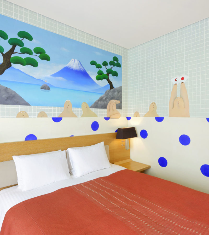 東京花園酒店原本只是一間普通的東京4星級酒店,但由2012年開始,酒店方開展了一個名為「藝術家在酒店」的藝術合作項目,邀請活躍於東京都的藝術家們下榻於酒店,以客房為畫布進行創作。藝術家們被賦予了完全自由的創作權利,自由地揮灑屬於個人特色的原創作品。 每一間藝術家客房都是獨一無二的藝術作品,大多以日本文化為主題,包括藝妓、相撲手、夏日祭典等,風格各異,但藝術性十足。在酒店內更有「藝術禮賓人員」,如果對畫作有任何問題,可以向他們查詢喔!