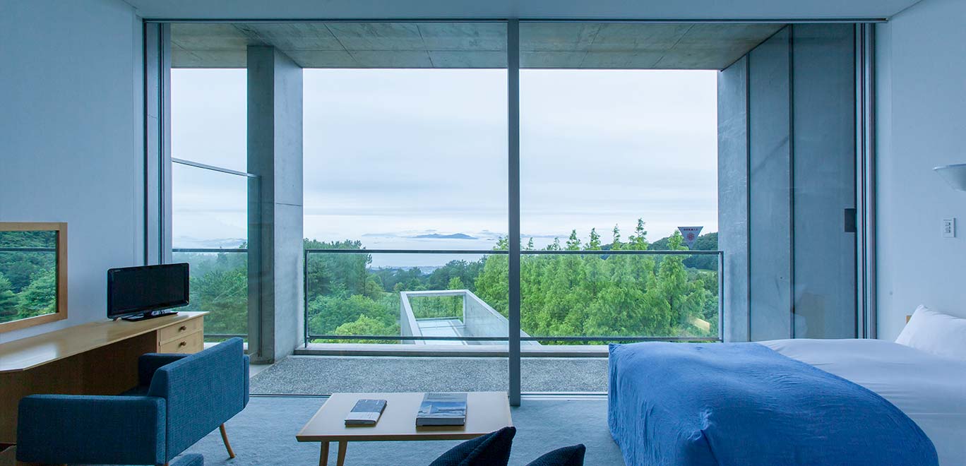 有「日本建築鬼才」之稱的安藤忠雄於瀨戶內海打造出以「極簡奢華」為概念的全套房式奢旅「瀨戶內RETREAT青凪」可是令人眼前一亮的夢幻住宿!座落於草綠與湛藍的混凝土建築,可以遠眺瀨戶內海,有種隱居山林的感覺。 客房只有7間,房間面積極廣,建築風格與酒店外觀如出一徹,以藍、白、灰及木質家具營造出極簡,讓住客暫時遠離煩囂,融入大自然之中。 另外,酒店還有一個長30米的露天無邊際泳池「THE BLUE」,彷彿與前方的大海連接,也是住客最喜歡打卡的地點。