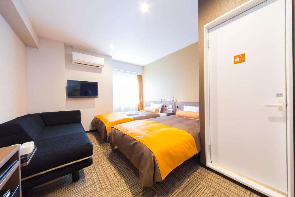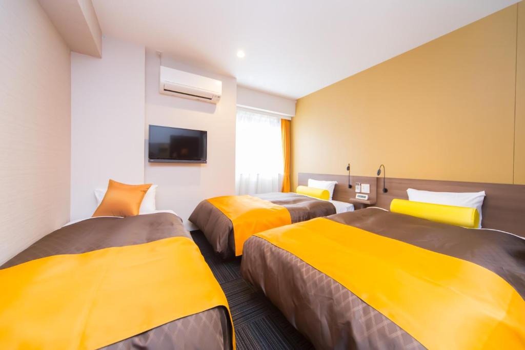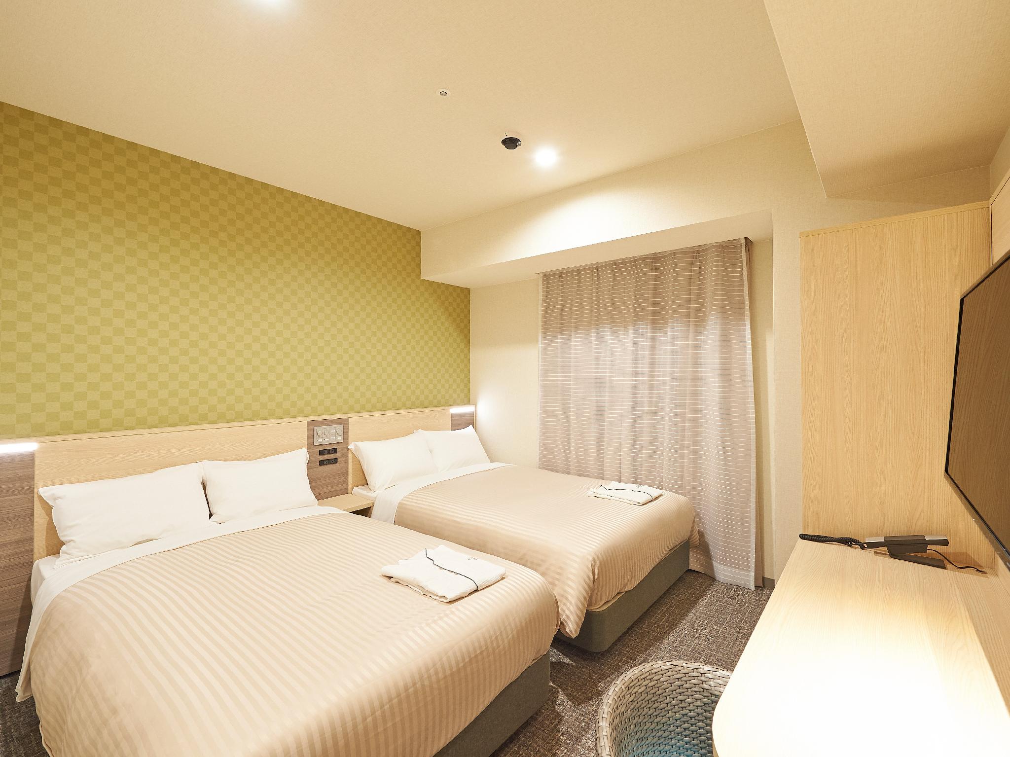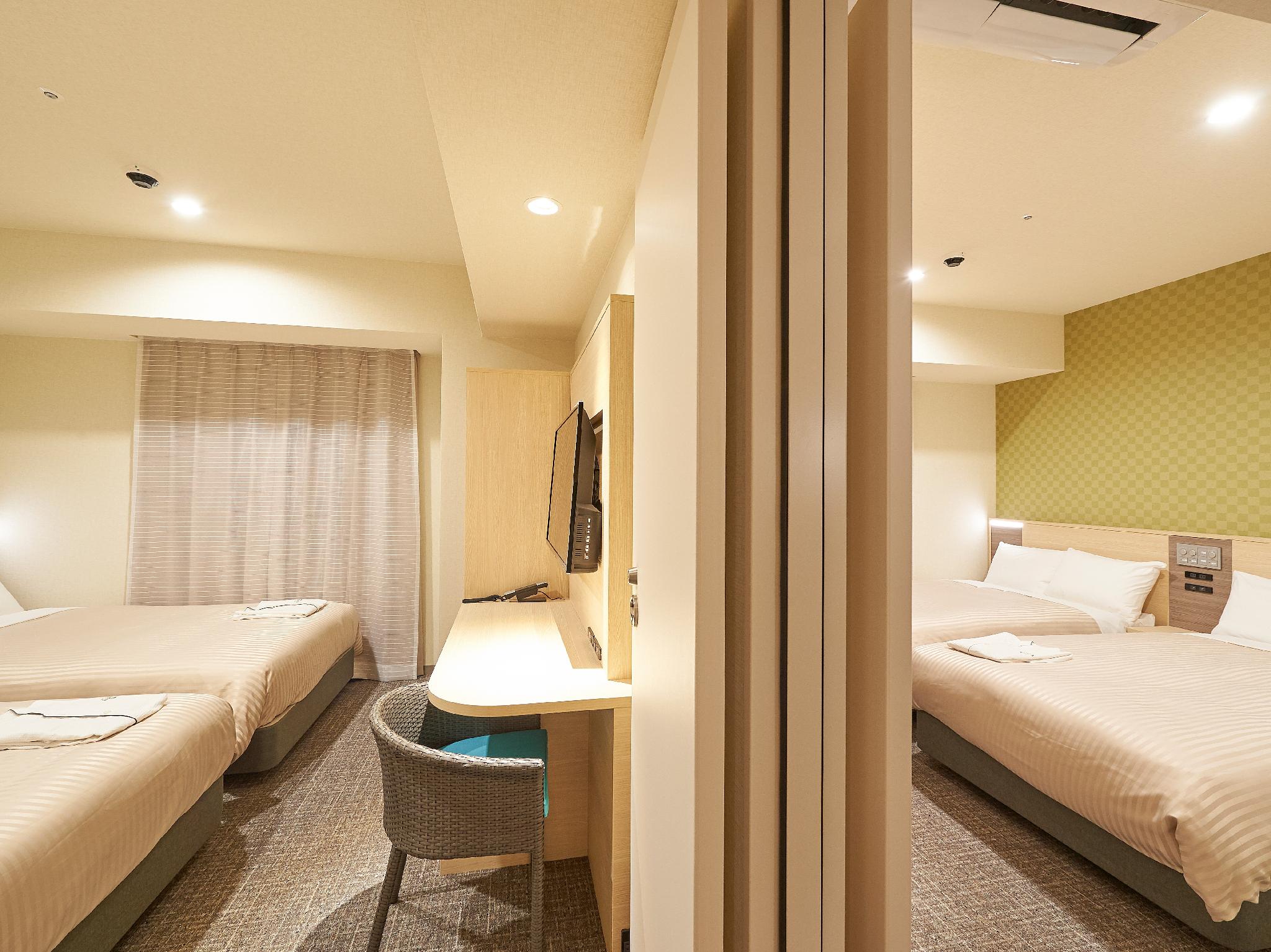 大阪難波日和酒店分為MOMIJI和SAKURA兩棟,一共有224間客房,而客房大致分為雙人房、雙床房和家庭房三類,其中標準雙人房面積約172 平方呎,而家庭房就有兩張單人床加一張日式床墊,面積約215 平方呎,空間頗大,而且距離各鐵路線難波站極近,步行至心齋橋筋商店街也只是7分鐘路程,非常方便!