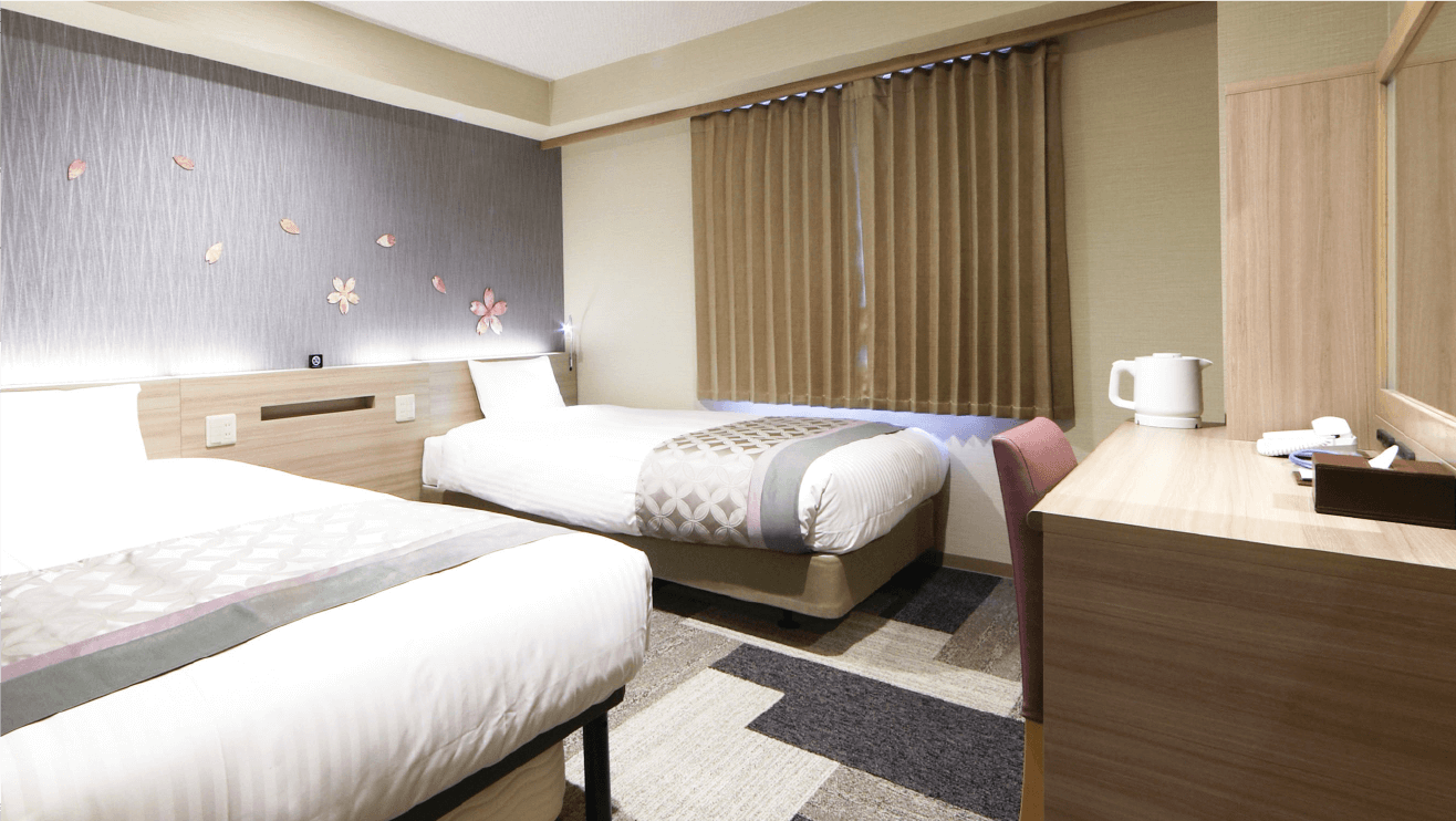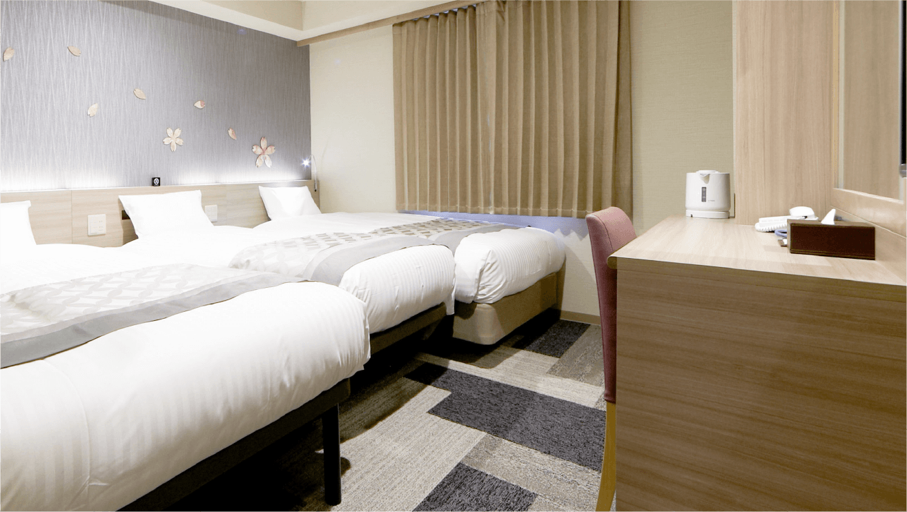 伏見稻荷大社 的千島居、客房內的櫻花圖案、寢具上的和風圖紋等,非常能夠感受到日本風情。再來為大家介紹The Bridge酒店房型方面的選擇,包括:單人房(Single 15平方米)、雙人房(Double 15平方米)、雙床房(Twin 18平方米),也有比較適合小家庭的三人房(Triple 18平方米),空間不大在同區來說自是中等。