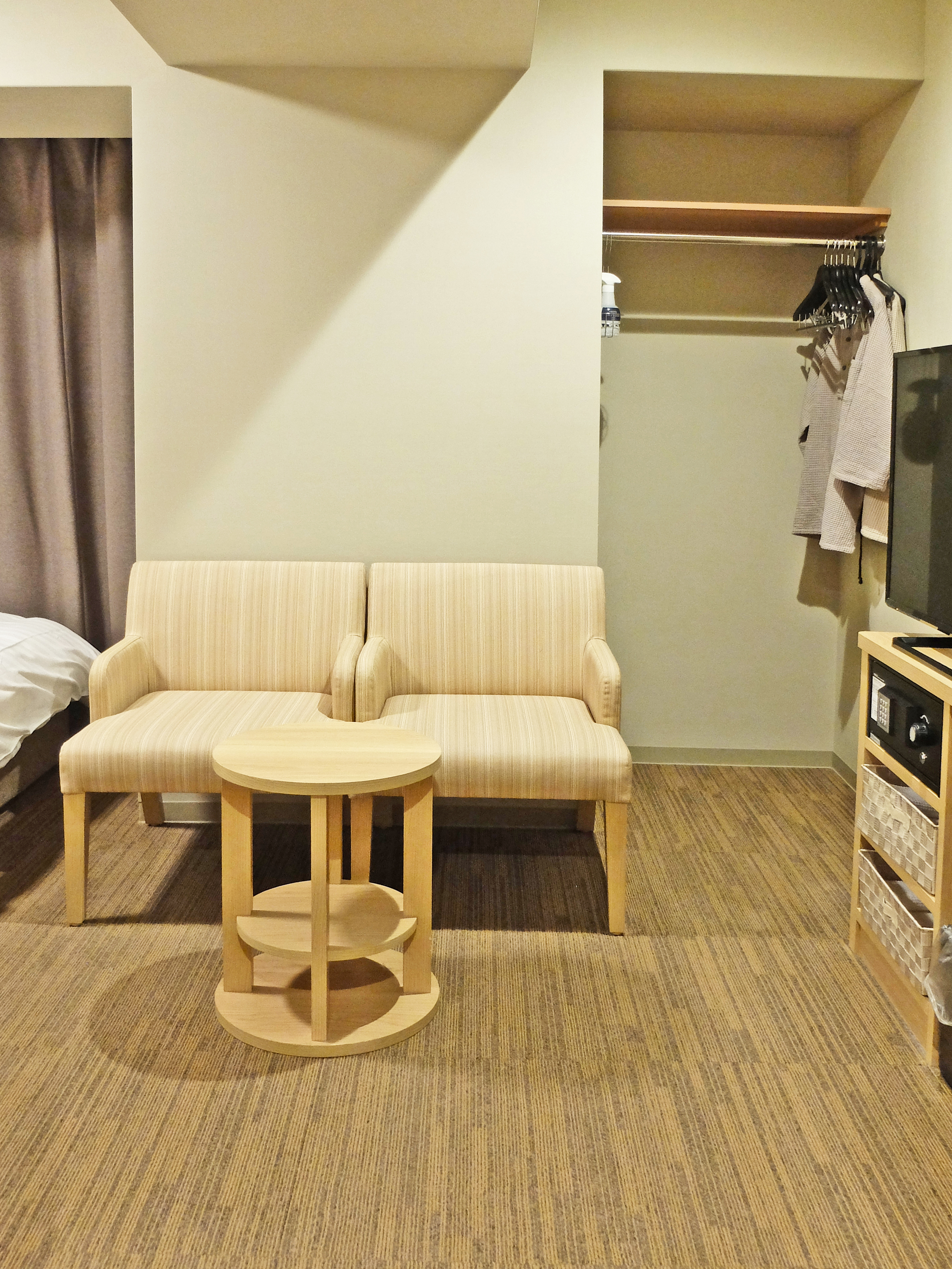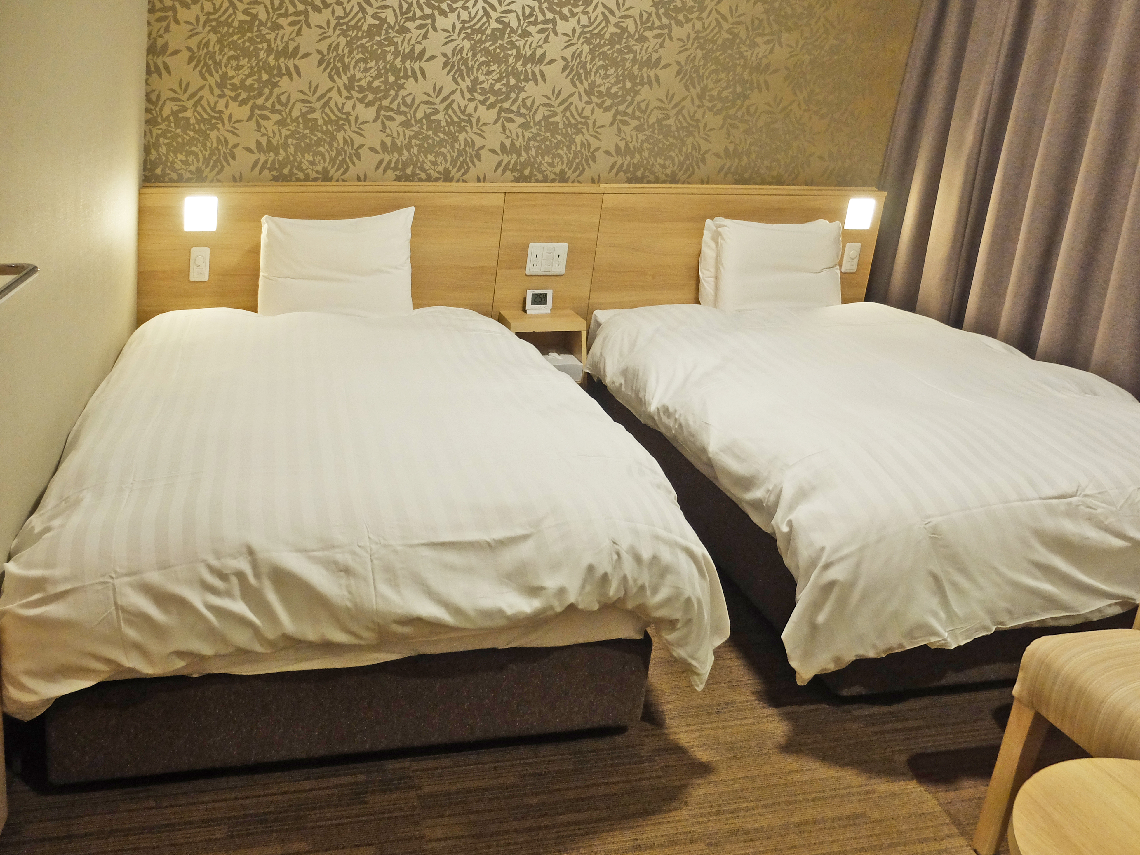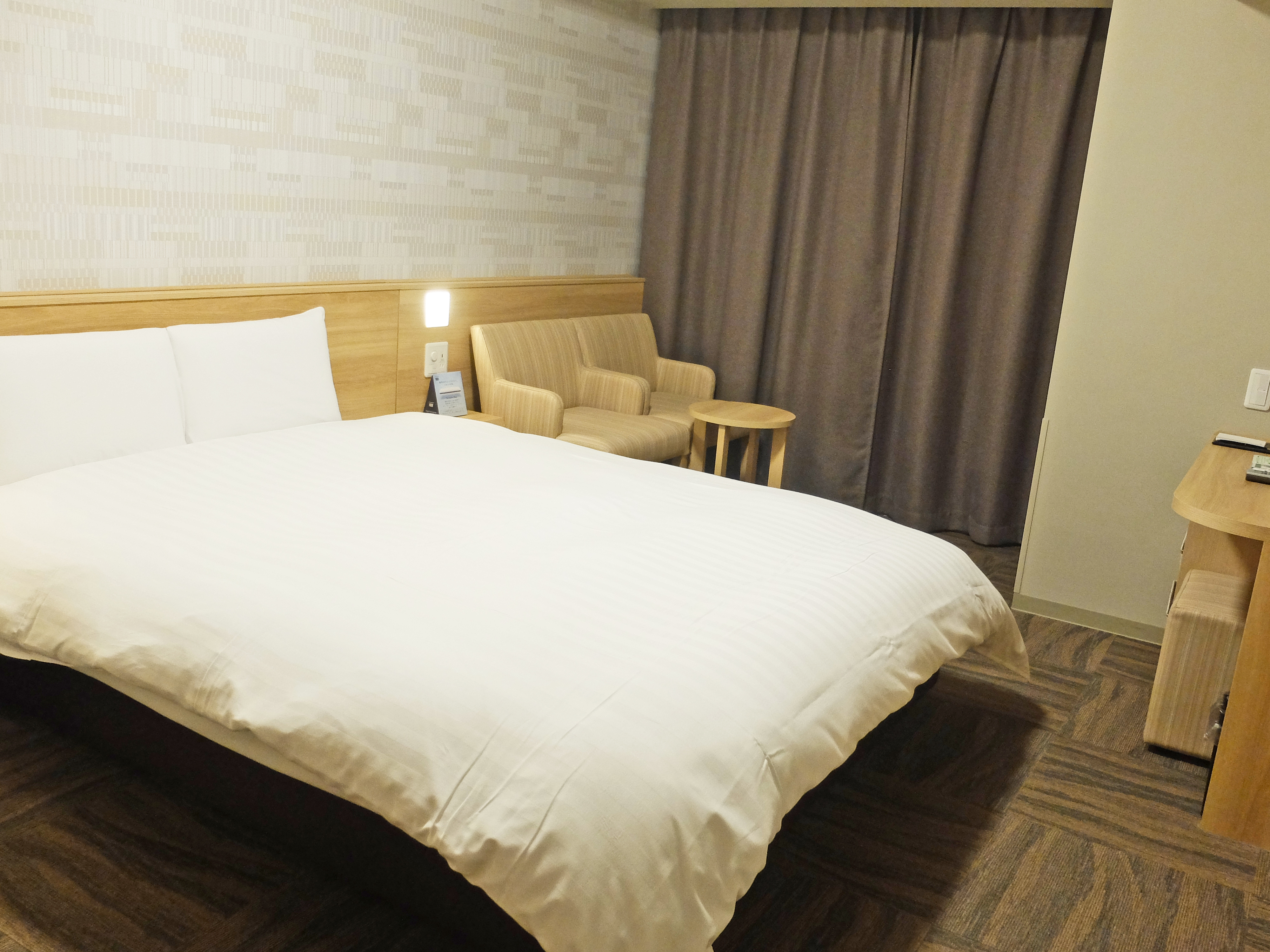 Dormy Inn PREMIUM 難波別館 房型以雙人房和雙床房為主,最多入住2人。全館禁煙,需要吸煙的住客可以使用2樓、8樓和13樓的吸煙間。房間面積由雙人房的16平方米起,光看數字感覺空間不大,但酒店在室內設計、傢俱選用上花了功夫,整體空間感充足。即使是最小的雙人房也有滿滿的起區空間,打開行李甚麼的完全沒困難!
