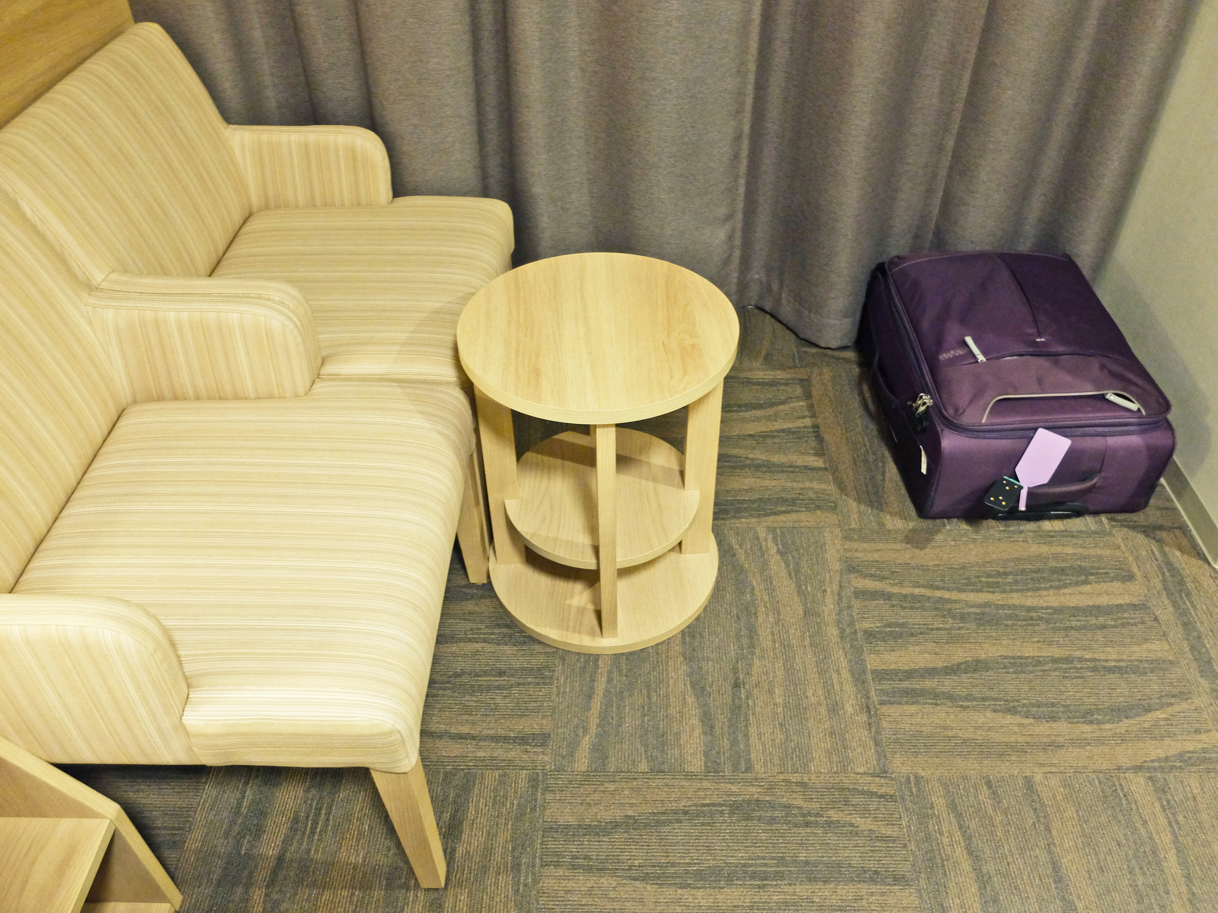 雙床房(Twin Room)兩張椅子及小圓枱的起居空間