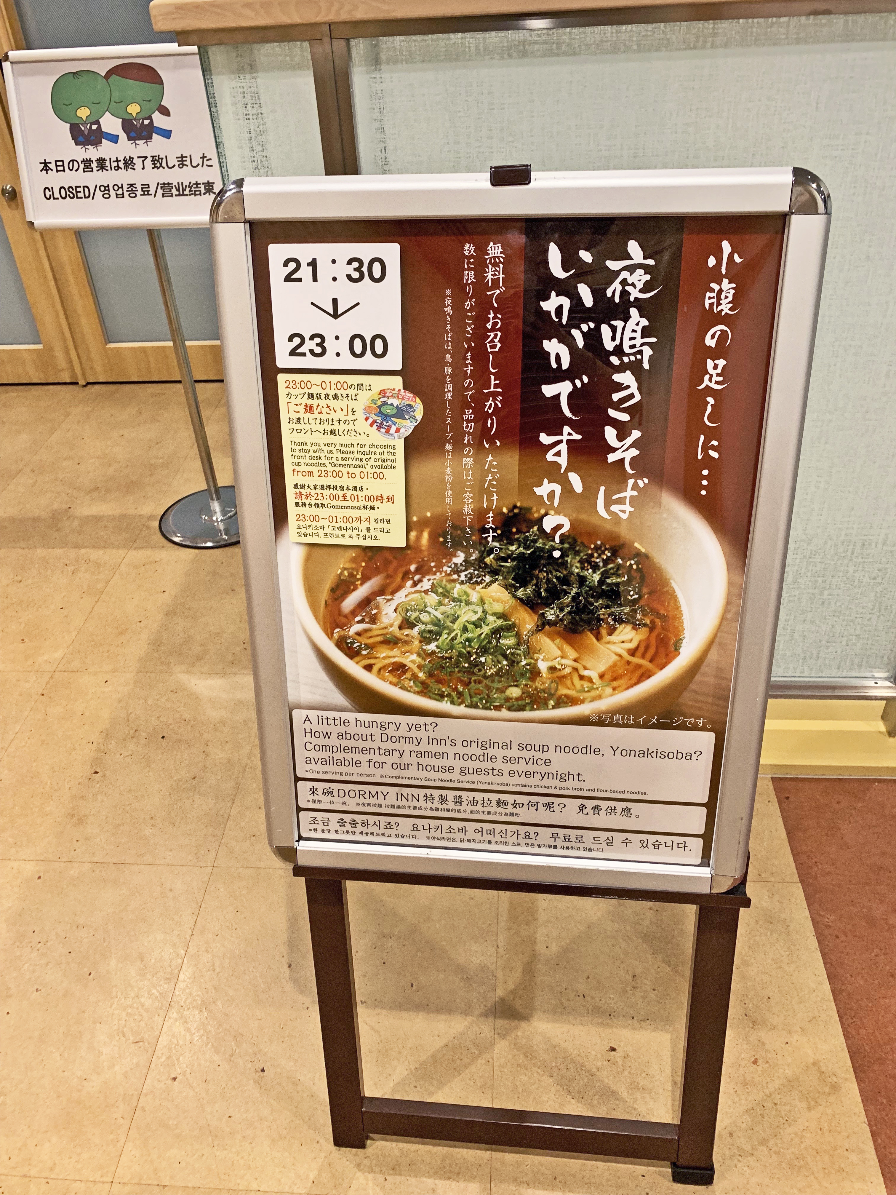 Dormy Inn PREMIUM 難波別館天然溫泉朝霧之湯酒店 當然也有提供「夜鳴きそば」,每晚21:30~23:00就可以在2樓的餐廳「NATAGO」品嚐到熱騰騰的醬油拉麵,份量不多,當宵夜剛剛好。