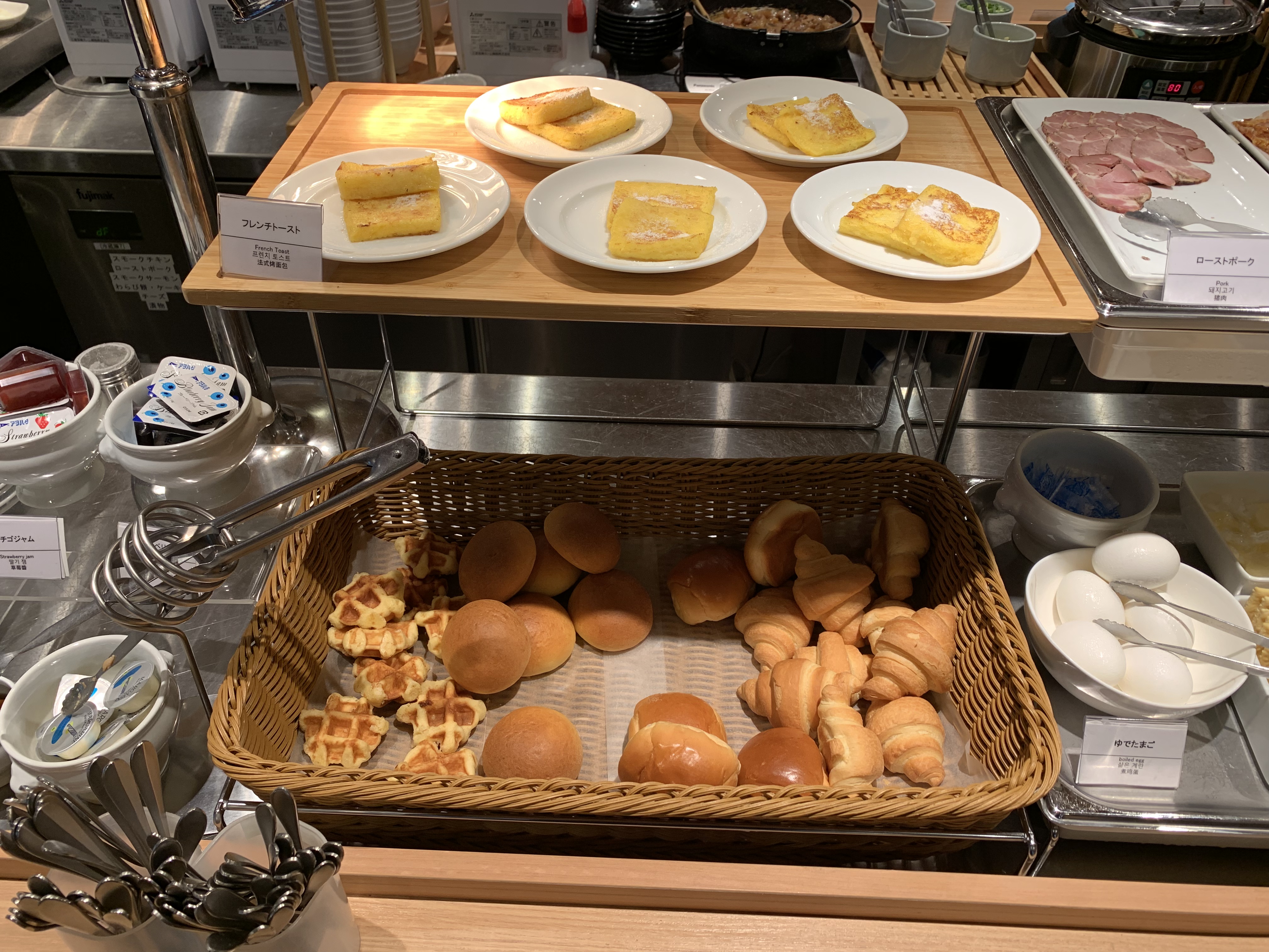 選擇有附早餐的住宿方案的話,可以在07:00~09:30期間於2樓的餐廳「HATAGO」享用自助式早餐(1,800円),選擇多元化,包括日式小菜、白飯、煎魚、味噌湯、壽司