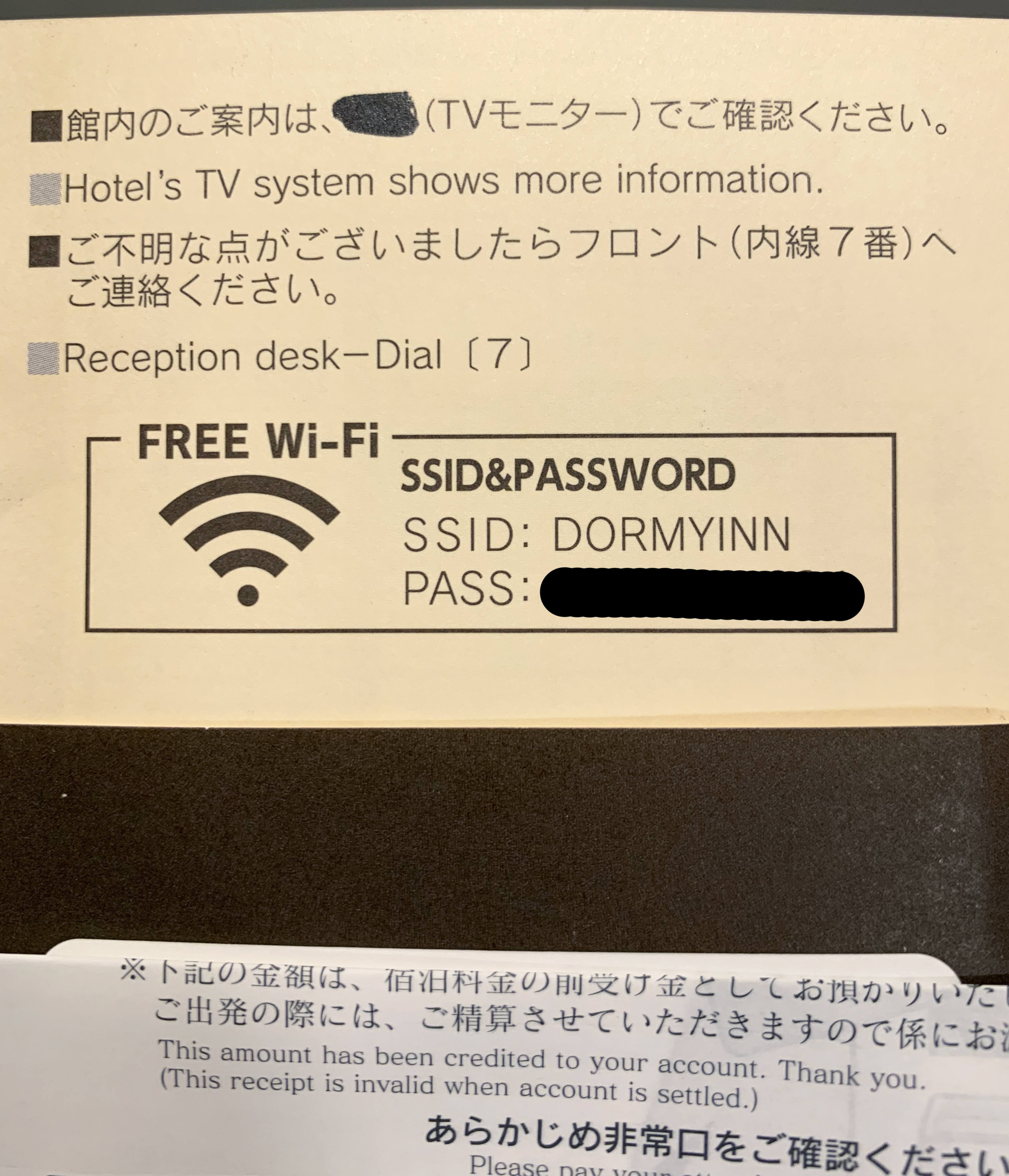 Wi-Fi密碼有印在放房下的小信封裡,不怕弄不見了