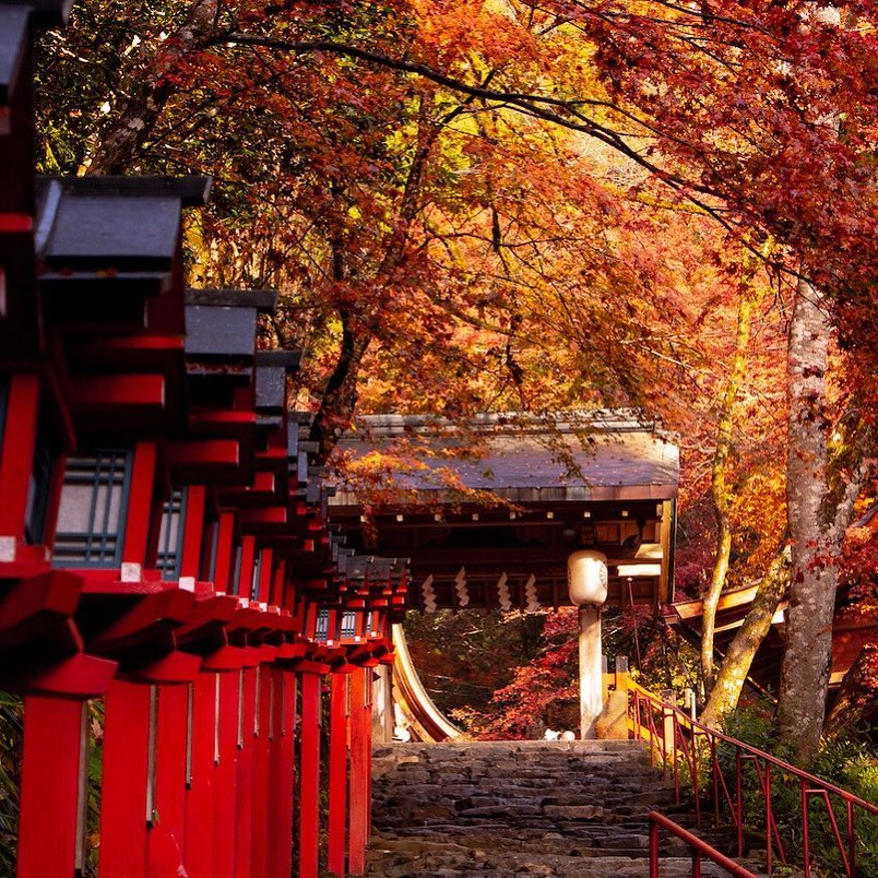 位於京都近郊的貴船神社四季都有不同的景色,從綠轉黃,黃轉紅,貴船神社的鳥居到本宮參道都滿佈紅葉,十分美麗!如果你是《名偵探柯南》的粉絲的話,應該也不難發現這是《迷宮十字路》中出現過的場景!