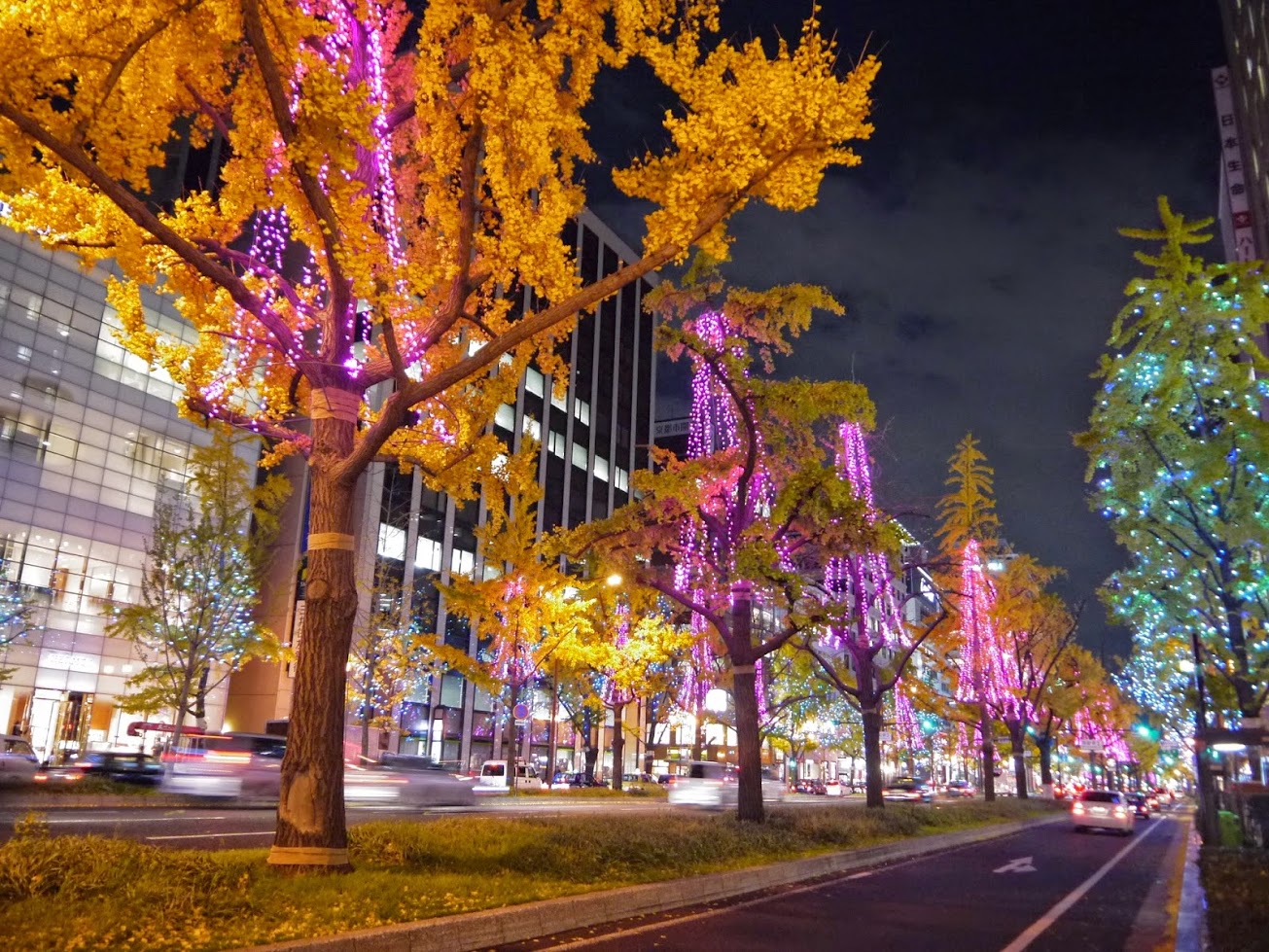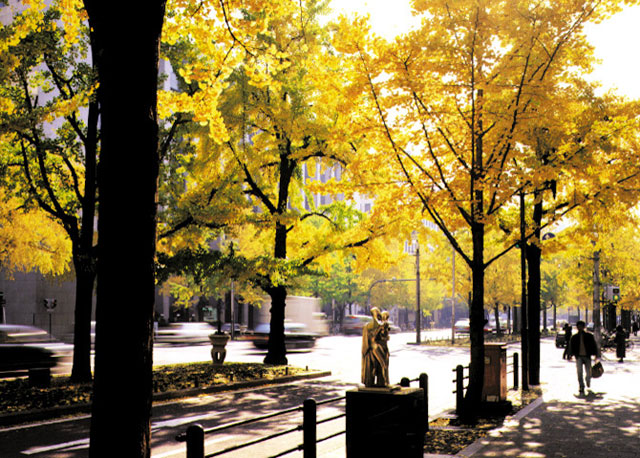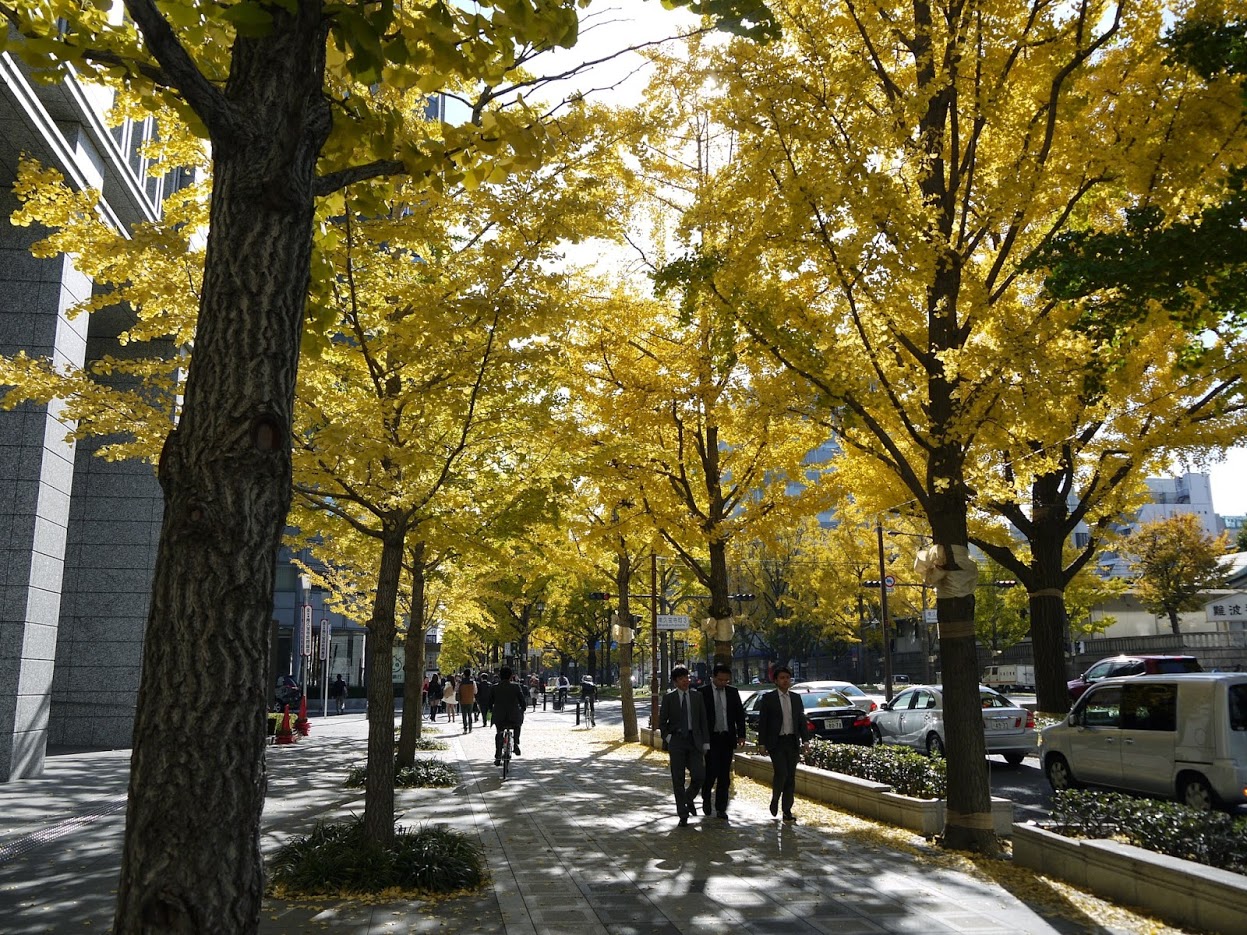 大阪御堂筋通由南至北貫通大阪市中心,近千棵銀杏樹由梅田斷斷續續伸延至難波長約4.2公里,每年11月下旬至12月上旬就會變成金黃色,形成一條秋季限定嘅浪漫黃金大道(御堂筋通りのイチョウ並木)!