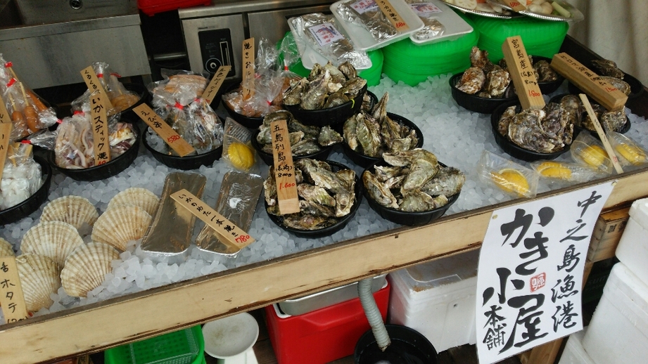 中之島漁港分為兩部份,一是賣活魚海產的漁市場部份,雖然面積不大,但供應海產種類不少,均來自日本各地的海港的新鮮漁獲。除了各種適合製作刺身的活魚之外,還有扇貝、松葉蟹、魷魚、海葡萄等海產。二是供應刺身、海鮮丼、炭火燒海鮮嘅「中之島食堂」,可以在景觀開陽的露天座住一邊吹住海風,一邊品嚐新鮮海鮮料理!暑假期間,中之島漁港更推出了不少活動,如鮪魚解體表演、現場藳燒鰹魚等,詳情按此 。