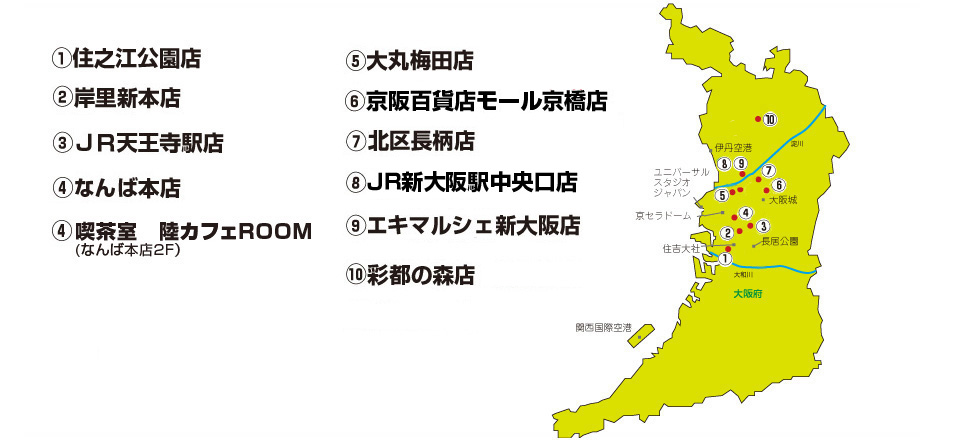 りくろーおじさんの店(Rikuro’s老爺爺的店)現在只在大阪地區設有10家分店,在日本其他地方也找不到的!#4 難波本店和 #5 大丸梅田店比較靠近熱門觀光點,方便大家購入。