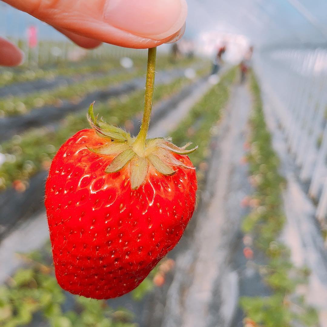 岸和田観光農園種植的是「女峰草莓」甜度和酸味均衡,外觀亮麗鮮紅有光澤。但由於只於週末及假日開放,很多時段的預約已經滿了,建議大家可以選擇採草莓+BBQ的組合,空位比較多。