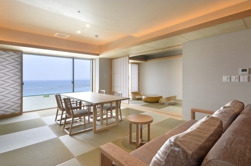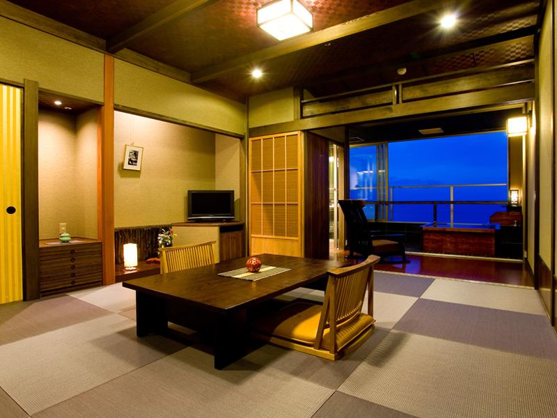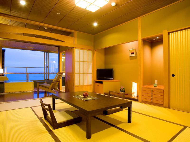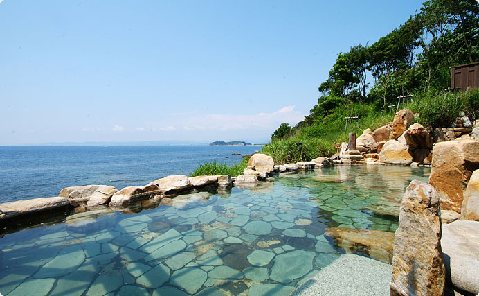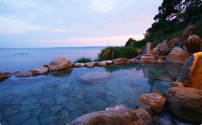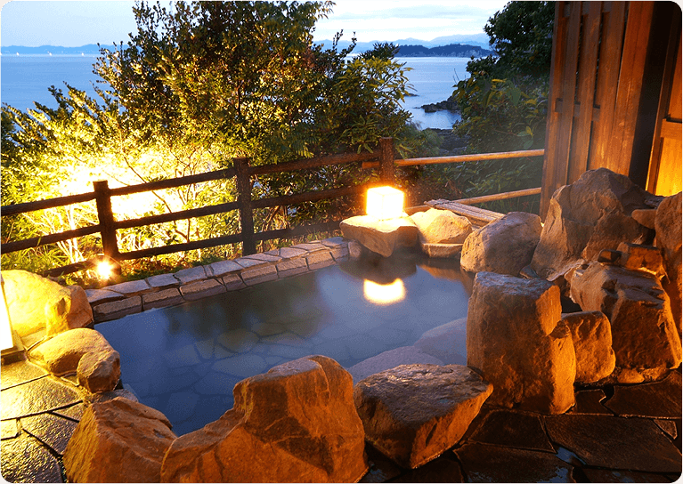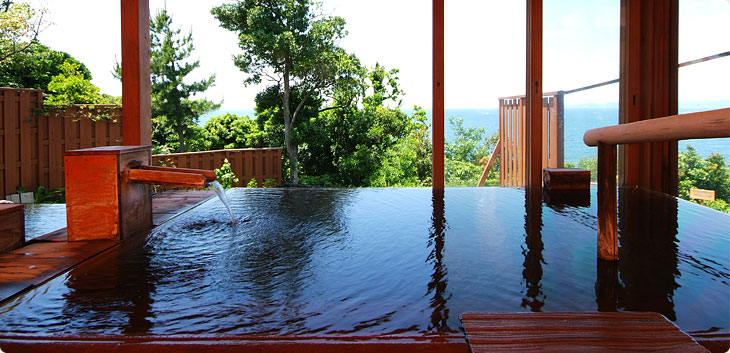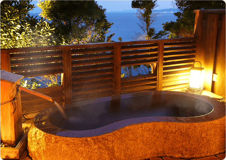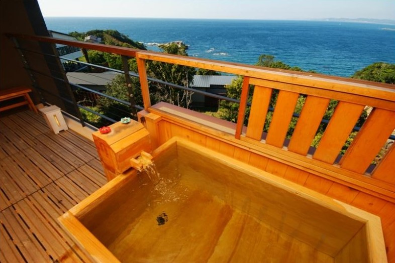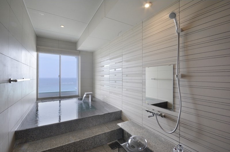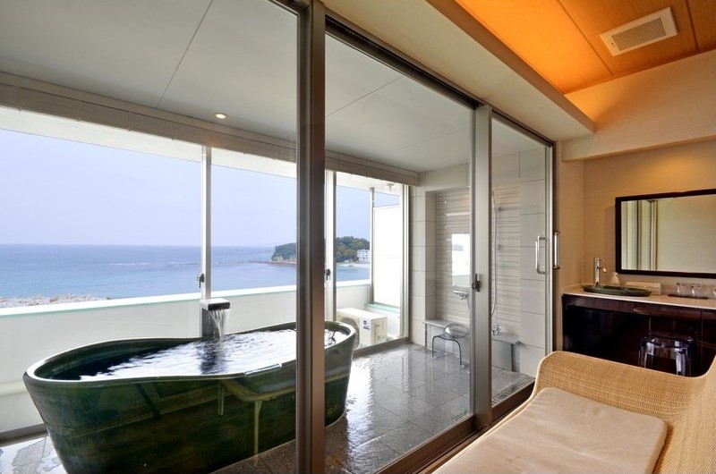 除了房內的私人風呂,酒店室內有大湯屋「海つばき」、戶外有混浴的露天風呂,海天一色白壯麗景緻令人難忘。