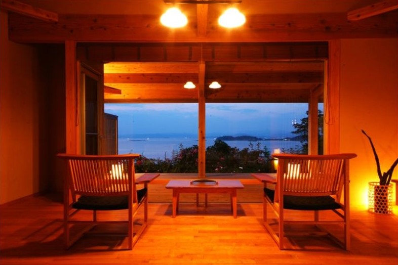 「海舟」在白濱算是數一數二的高級住宿,無敵海景加上和式小屋設計份外寧靜。位於千疊敷附近的「海舟」利用地理優勢將住宿建於懸崖上,於房間內 / 望陽亭便可觀賞「夕日百選」的白濱日落景緻。