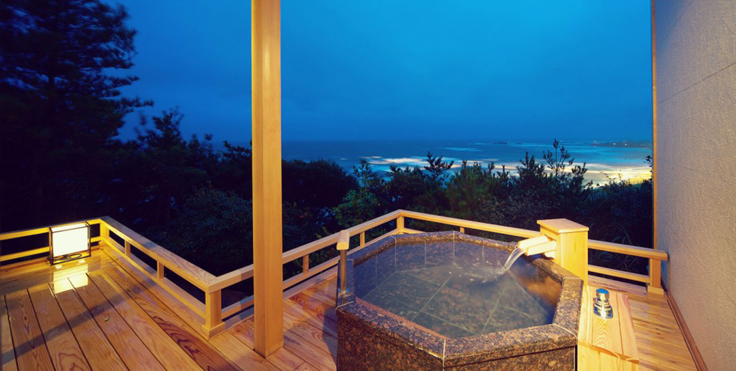海與森別邸設有露天浴池,大家可以一邊泡著溫泉,一邊欣賞夕陽緩緩升起的景色,聽聽海浪拍打岸邊的聲音,十分閒適。而且,大部分的客房都可以眺望到太平洋和燈塔,如果到銚子旅遊的話,十分推薦大家入住海與森別邸。