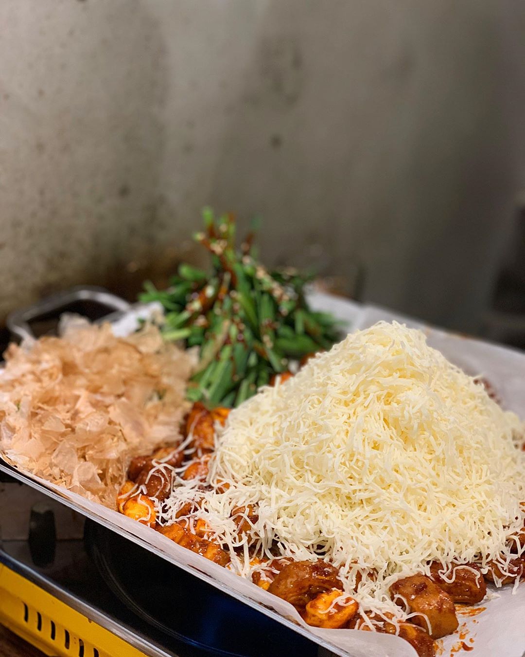 另一個人氣菜單是「綜合烤腸 (배떼기 삼창)」(₩29,000),由韭菜、鹽味及柴魚3種口味組合而成的拼盤,可以一次過吃到3種不一樣的烤腸,吃得差不多的時候還可以追加海苔炒飯作結,完全是完美的一餐啊!