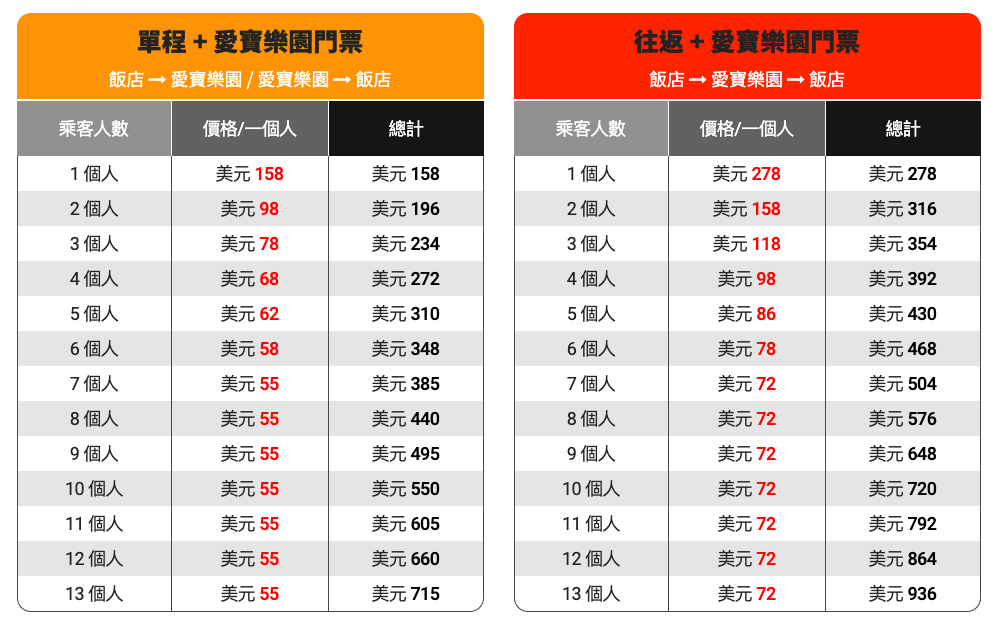 樂園亦有推出專車接送服務,不管在哪裏上車的費用都一樣,按人頭收費,可以直接去到你指定的地方上車,直達樂園,而且費用已包含愛寶樂園的門票,不用再分開購入,但收費並不便宜,小編並不推薦使用。