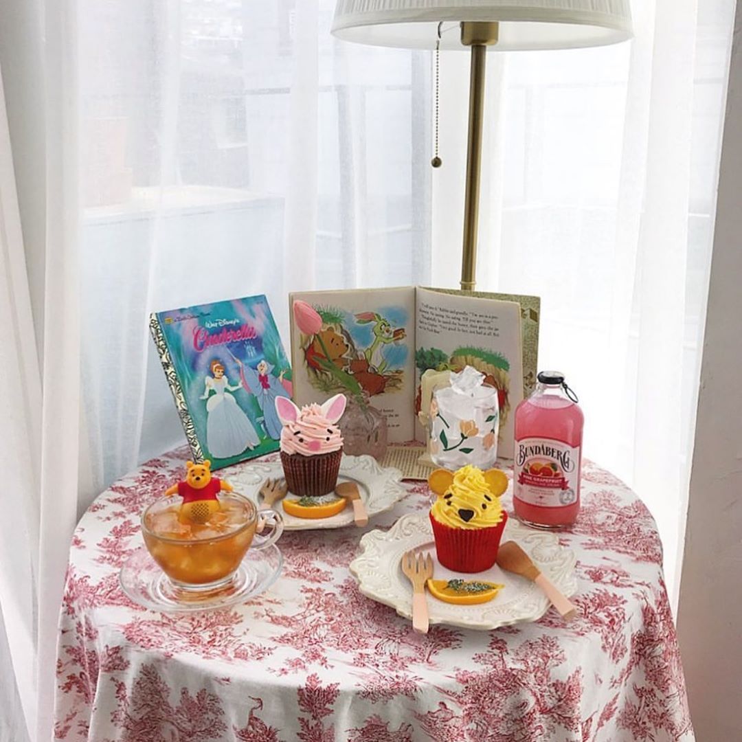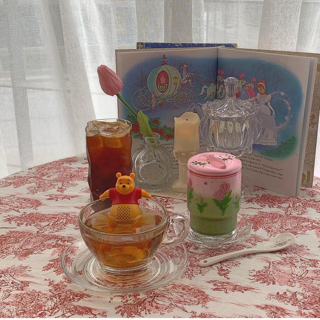 Cafe Rose是以小熊維尼為主題的咖啡廳,剛進入店內就可以看到每一桌上都擺了一本迪士尼的童話故事書,很有童真!最特別的是,這裏的泡茶器是維尼的樣子,像杯緣子一樣掛在杯邊,而下半身就在茶裏泡澡,超可愛啊!還有維尼和小豬造型杯子蛋糕,配上維尼故事書作背景,真的是打卡一流!