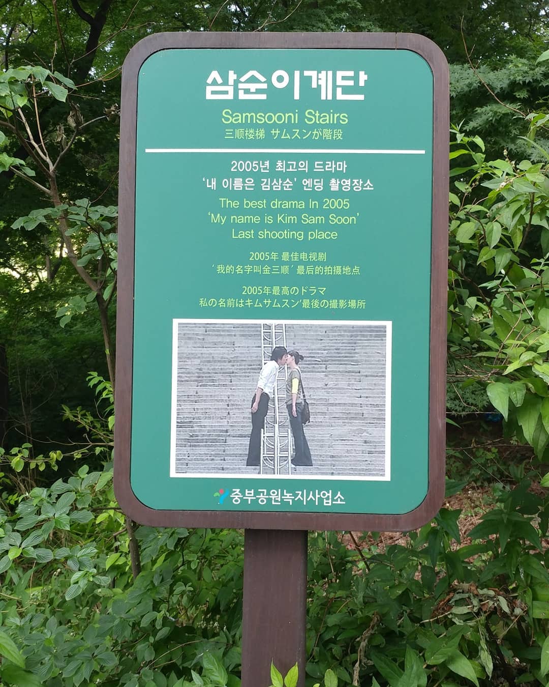 從首爾地鐵4號線「明洞站」4號出口步行約15分鐘至首爾特別市教育研究情報院,再沿著旁邊因韓劇《我的名字叫金三順》而聞名的「三順階梯」(삼순이계단)走,往八角亨的方向步行,走完全程直至N首爾塔約需40分鐘。