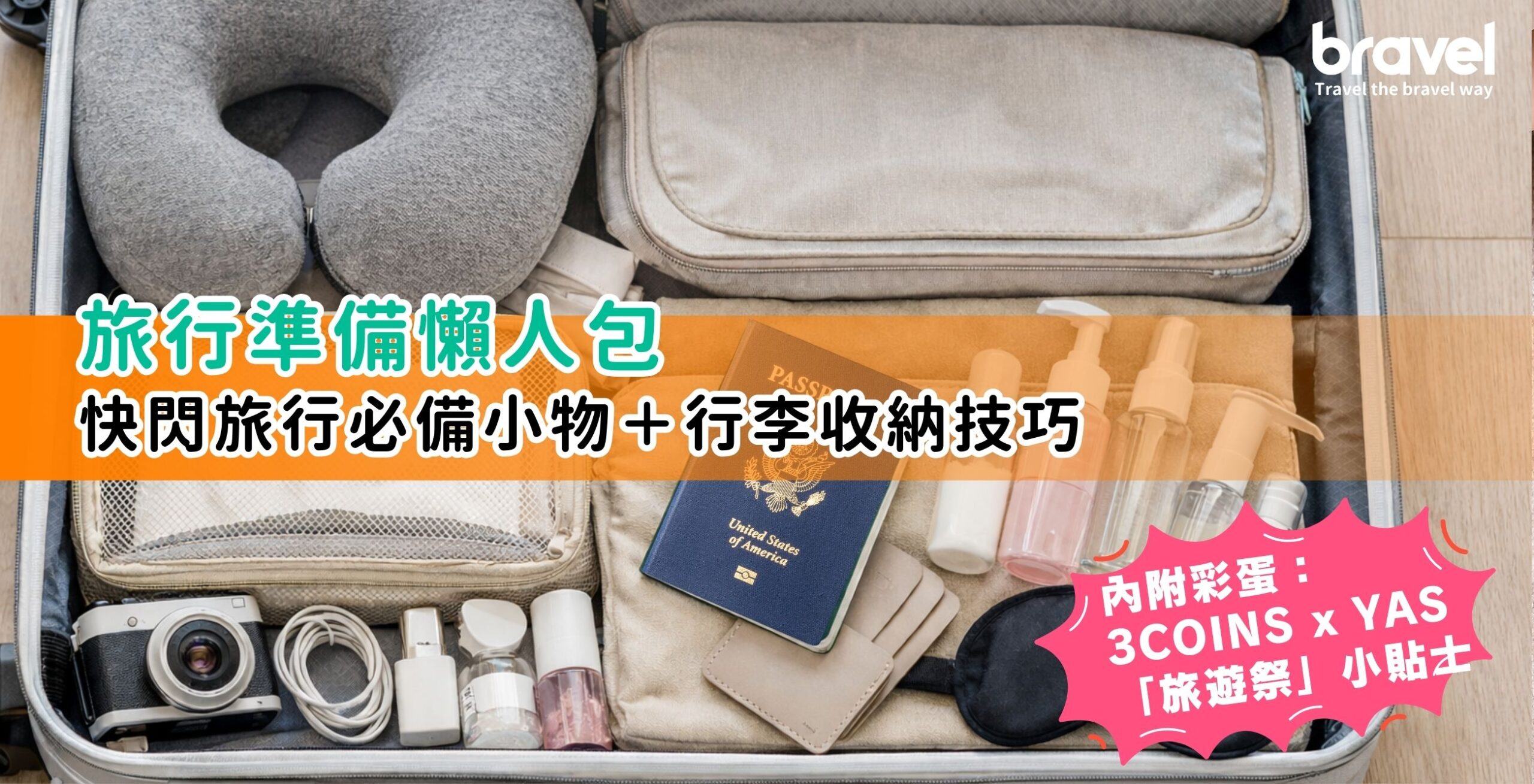 最近如果你剛好準備補貨,亦可能會留意到 3COINS x YAS 推出嘅「旅遊祭」聯乘活動。對本身就會去揀旅行收納袋、分裝瓶、頸枕等旅行小物嘅人嚟講,其實只係一個順手多留意嘅小彩蛋——重點依然係:旅行準備做得好,快閃都可以玩得好。