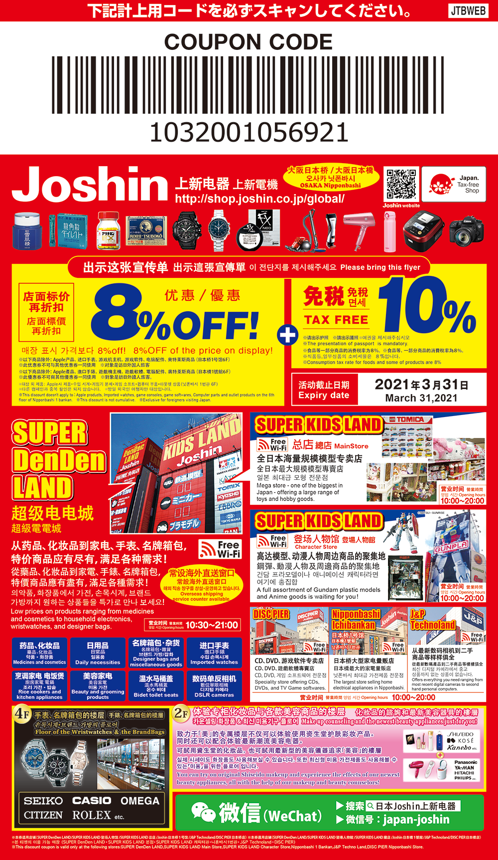 - 【2020 Joshin上新電機優惠券】10%退稅 + 高達8%折扣!血拼必備!