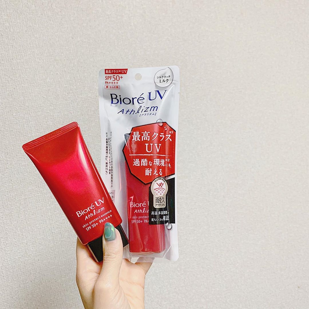 「@cosme THE BEST COSMETICS AWARDS 2019上半年防曬部門賞」一位的Biore主打防水防汗的Athlizm系列防曬系數達SPF50+ PA++++,配方極防水、突破持久耐汗、耐抺擦,有乳液和乳霜兩款,夏外戶外活動必備。這支一推出即獲《MAQUIA》、《Marisol》、《non-no》、《VOCE》等雜誌評選為防曬產品一位,風頭完全蓋過ANESSA!