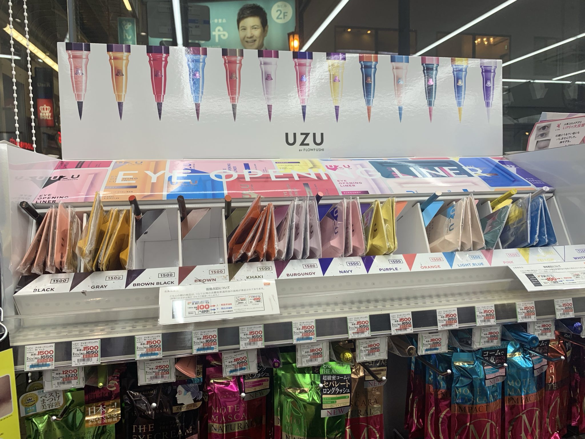 「@cosme THE BEST COSMETICS AWARDS 2018眼線部門賞」的第一位的UZU是由日本人氣彩妝品牌FLOWFUSHI創立,首度推出的產品是14隻顏色的眼線液(各1,500円),簡直就是前代FLOWFUSHI Moteliner大和匠筆眼線液的進化版,八角形的筆桿,筆刷仍然是由熊野和奈良的職人製作的「大和匠筆」,毛量增加了28%,顏色飽和度高。