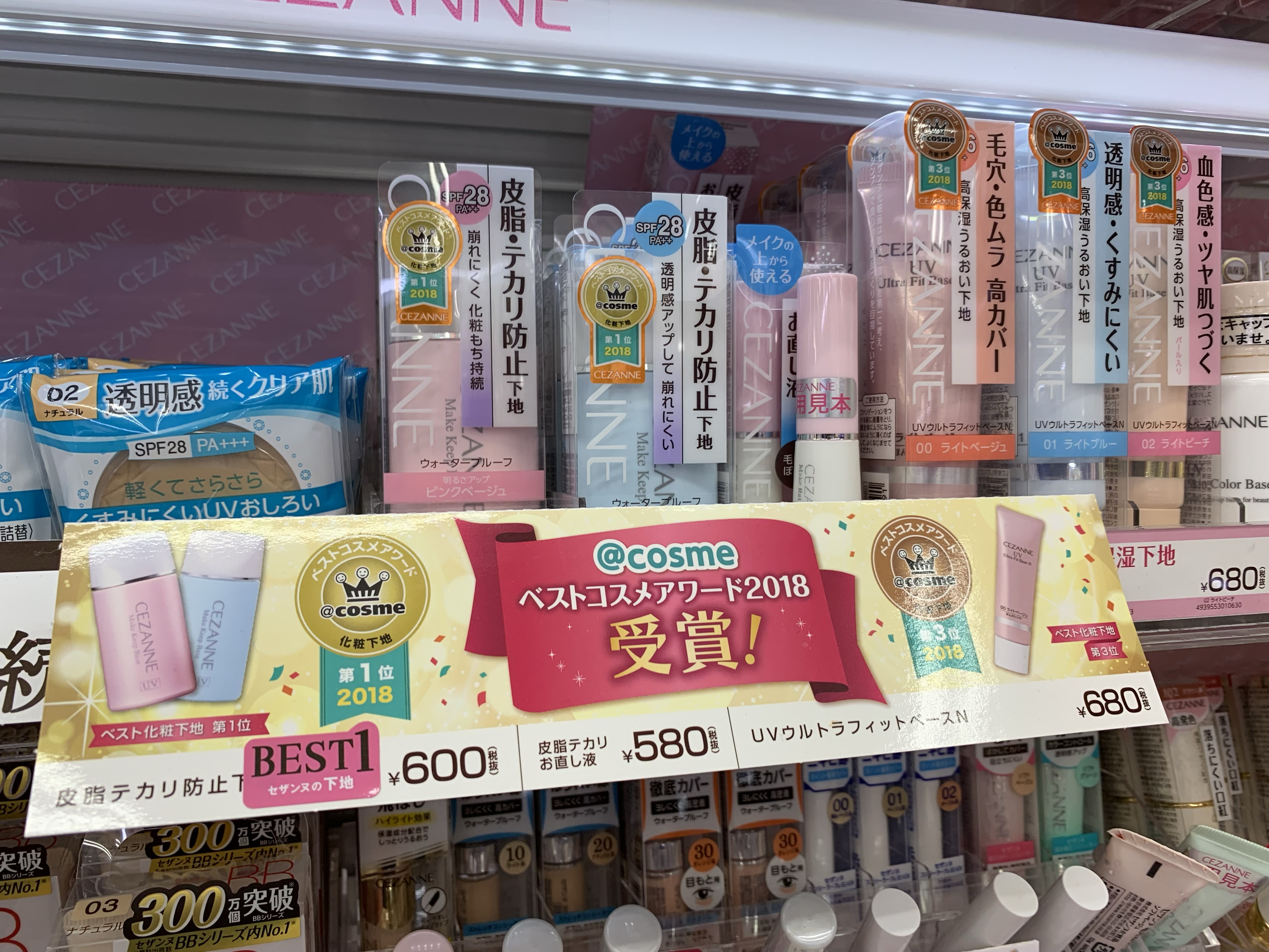 開架品牌CEZANNE的防曬隔離霜去年擊倒各大品牌成為「@cosme THE BEST COSMETICS AWARDS 2018妝前打底部門賞」的第一位和第三位。CEZANNE的妝前隔離霜有兩款,分別是被稱為「平民版Sofina」適合油肌的「CEZANNE 長效控油妝前隔離乳」和有7種高保濕成分適合乾肌的「CEZANNE 抗UV底霜N」,兩款的CP值都超高!