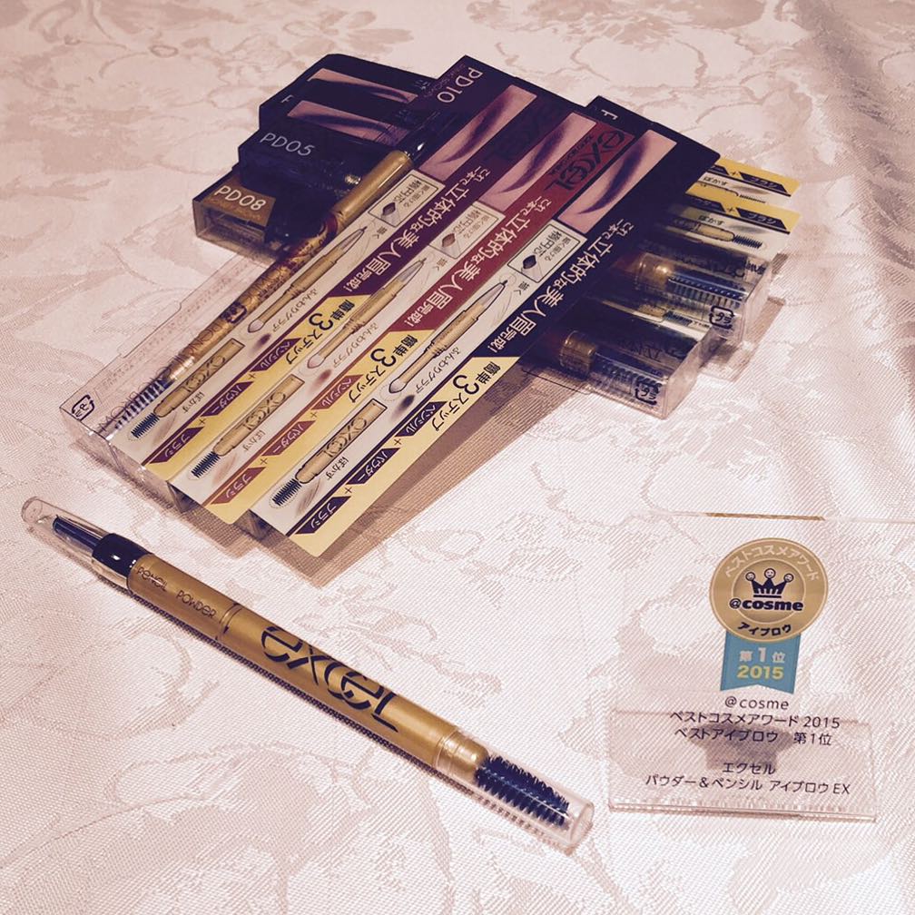 「@cosme store 2018人氣賞」第三位EXCEL三用眉筆 EX集眉筆、眉粉和眉刷於一身,多達9種顏色,無論那一種髮色的女生都可以選擇到適合的眉筆顏色。