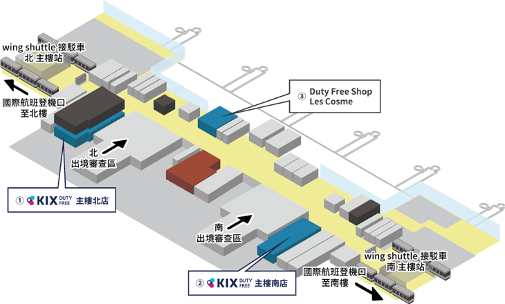 關西國際機場禁區內有三家免稅店可以使用!