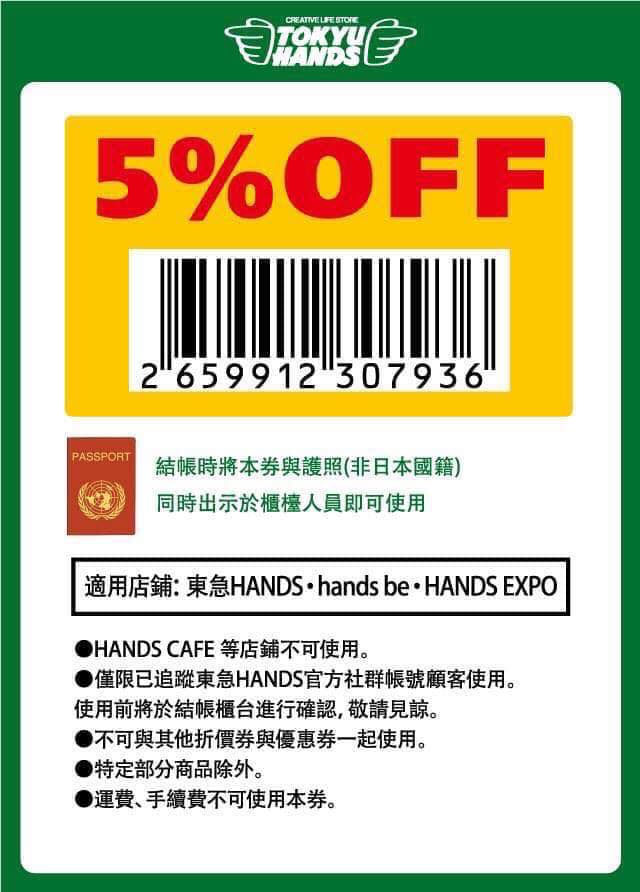 - 【2020 TOKYU HANDS 優惠券】10%退稅+5%折扣!血拼必備!