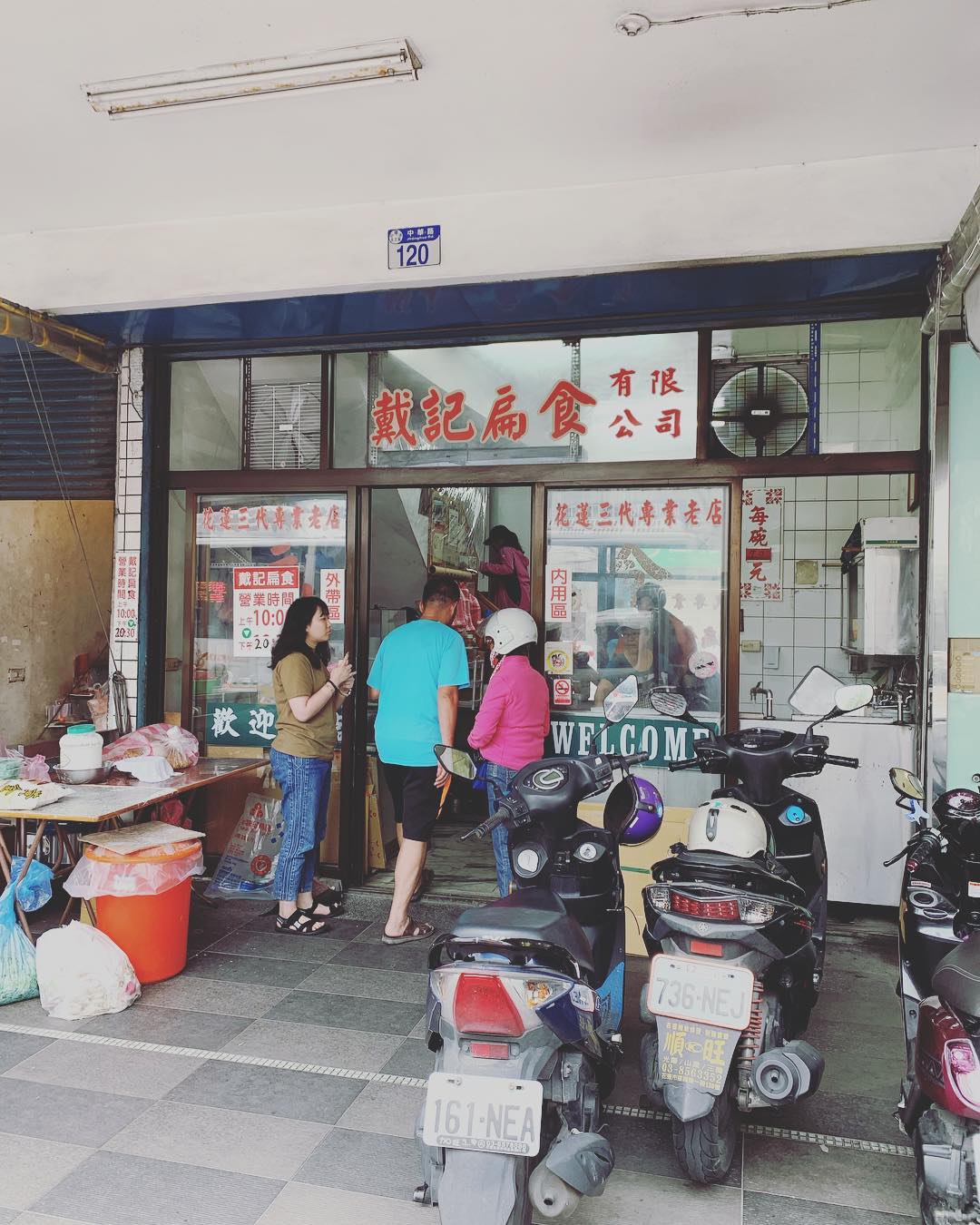 戴記扁食全店就只有售扁食一款食品,憑著四代祖傳手藝,使用獨家手工撖麵及製麵技術,造出薄但不易煮爛的扁食外皮,而餡料亦選用東部好山好水的在地溫體豬,而且都是當日現殺,以保證肉質新鮮不腥,再配上大骨湯以油蔥、芹菜簡單提味,口味清爽,成功吸引大批支持者一直到訪。