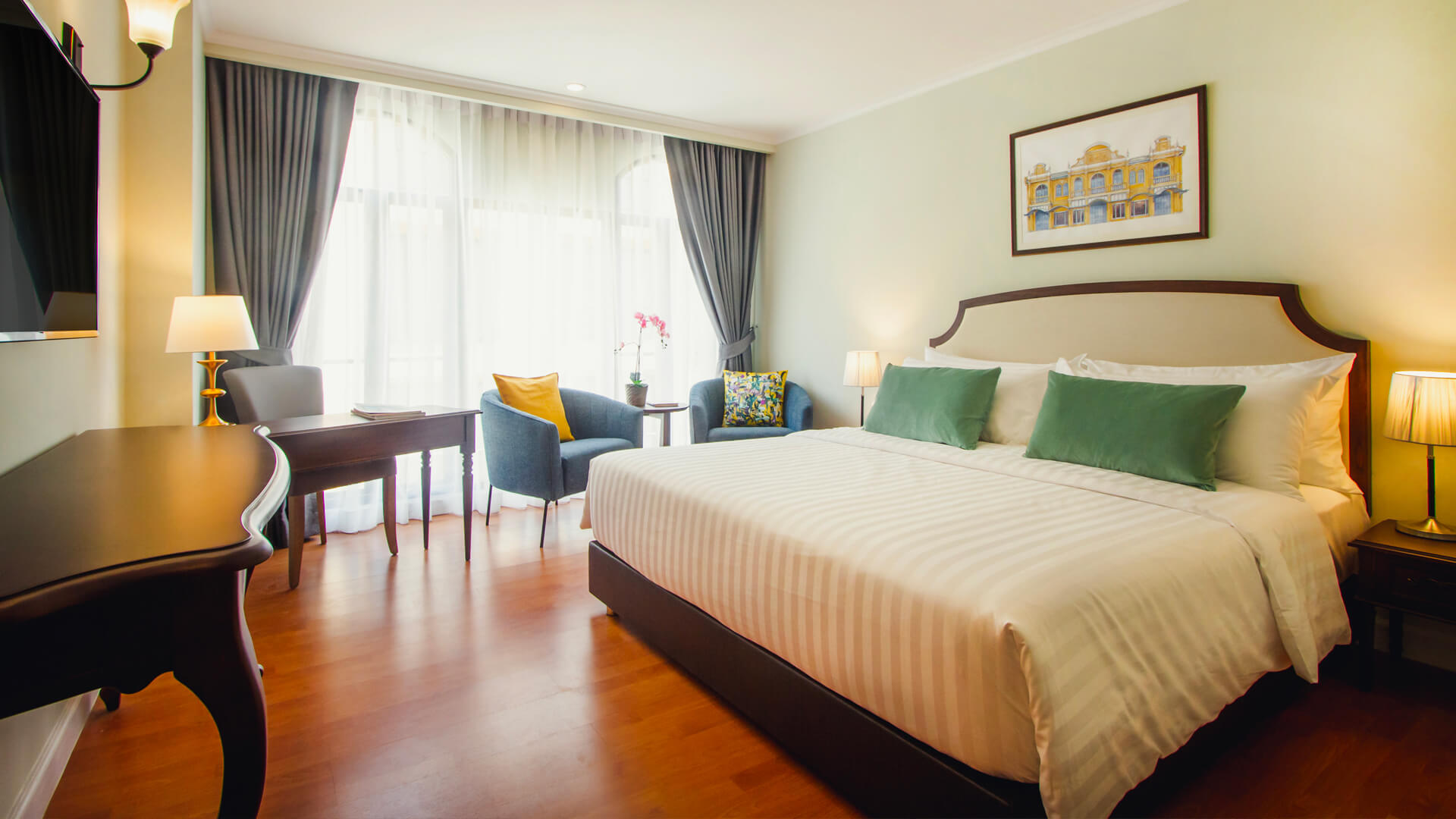 全個度假村總共有293間禁煙客房,以白、啡及灰色三色作為主調,配以木制傢俱、鵝黃色的燈光和窗外的樹木,令住客可以忘卻煩惱,享有最放鬆的假期。假期。