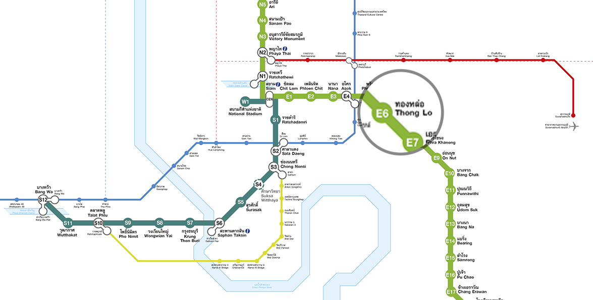 前往通羅區的交通非常簡單,只要搭乘BTS Sukhumvit線(綠色線)至「Thong Lo站」後,於3號出口離開車站,再往右手邊直走到Sukhumvit 55,就可以到達Thonglor區了!